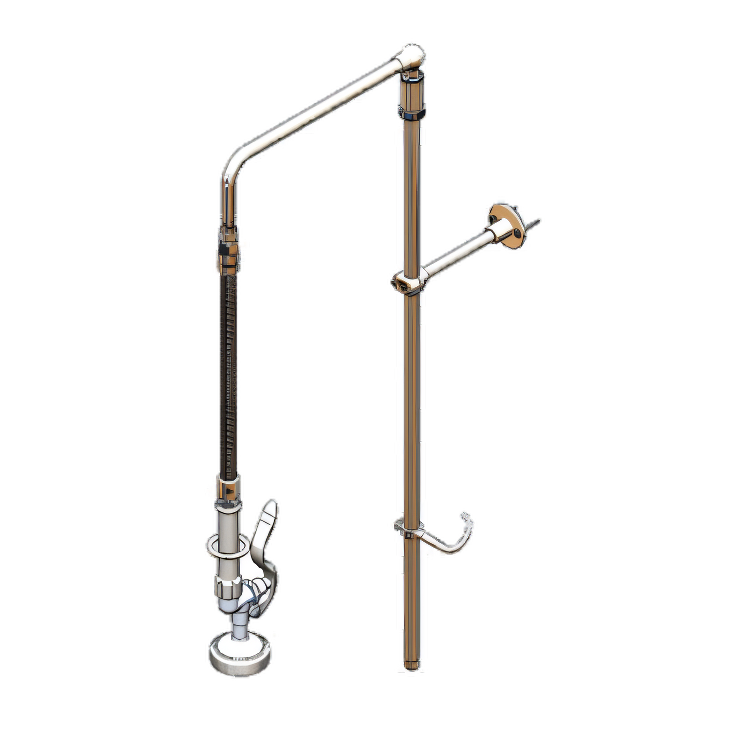 Pre-Rinse Unit Without Base Faucet, overhead swivel gooseneck reaches 12" over sink top, under sink 1/4" IPS tailpieces, height above sink top = 39", includes riser & wall bracket, 1.15 gpm spray valve (B-0107), 20" flexible stainless steel supply hose, finger hook, 2019 DOE PRSV - Class II