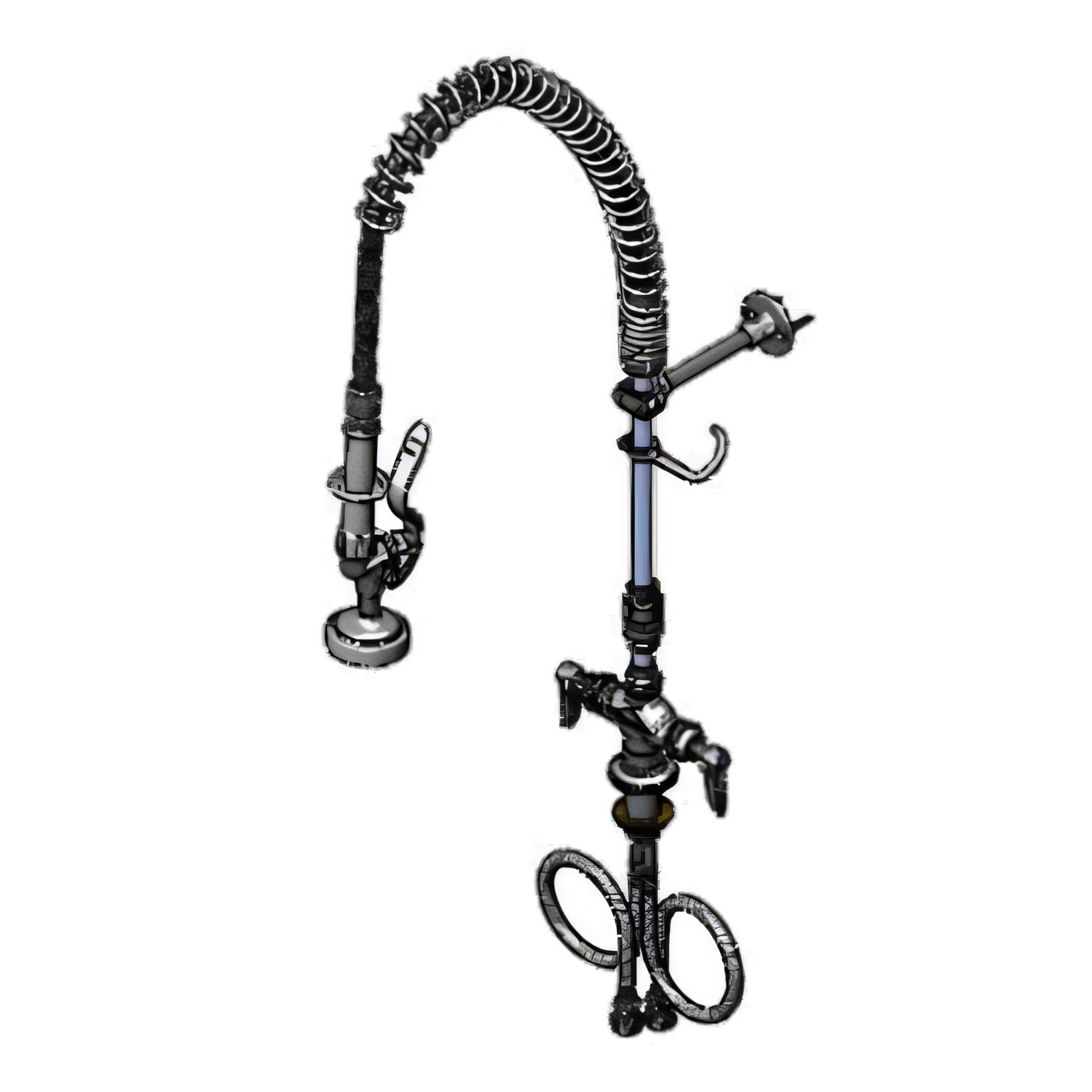EasyInstall Pre-Rinse Unit, spring action, single hole base, vacuum breaker, 1.15 GPM spray valve (B-0107), 44" flexible stainless steel hose, 079X 10" riser, 6" wall bracket, quarter-turn Eterna cartridges, lever handles with color coded indexes, low lead, 2019 DOE PRSV - Class II