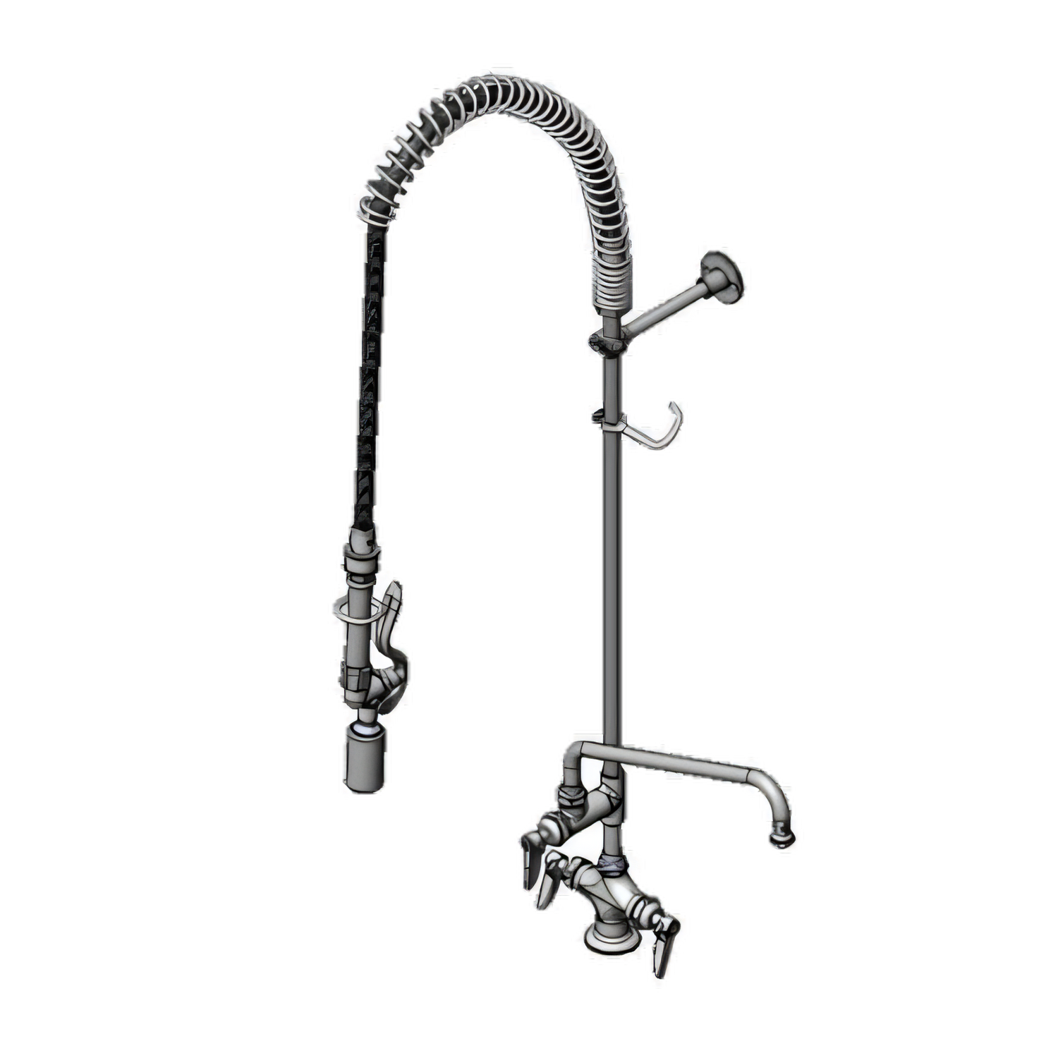 EasyInstall Pre-Rinse Unit, single hole deck mount, add on faucet 12" swivel nozzle, cerama cartridges with check valves, lever handles, 24" riser, 44" flexible stainless steel hose, 1.07 GPM spray valve (B-0107-J), 6" wall bracket, low lead, 2019 DOE PRSV - Class II