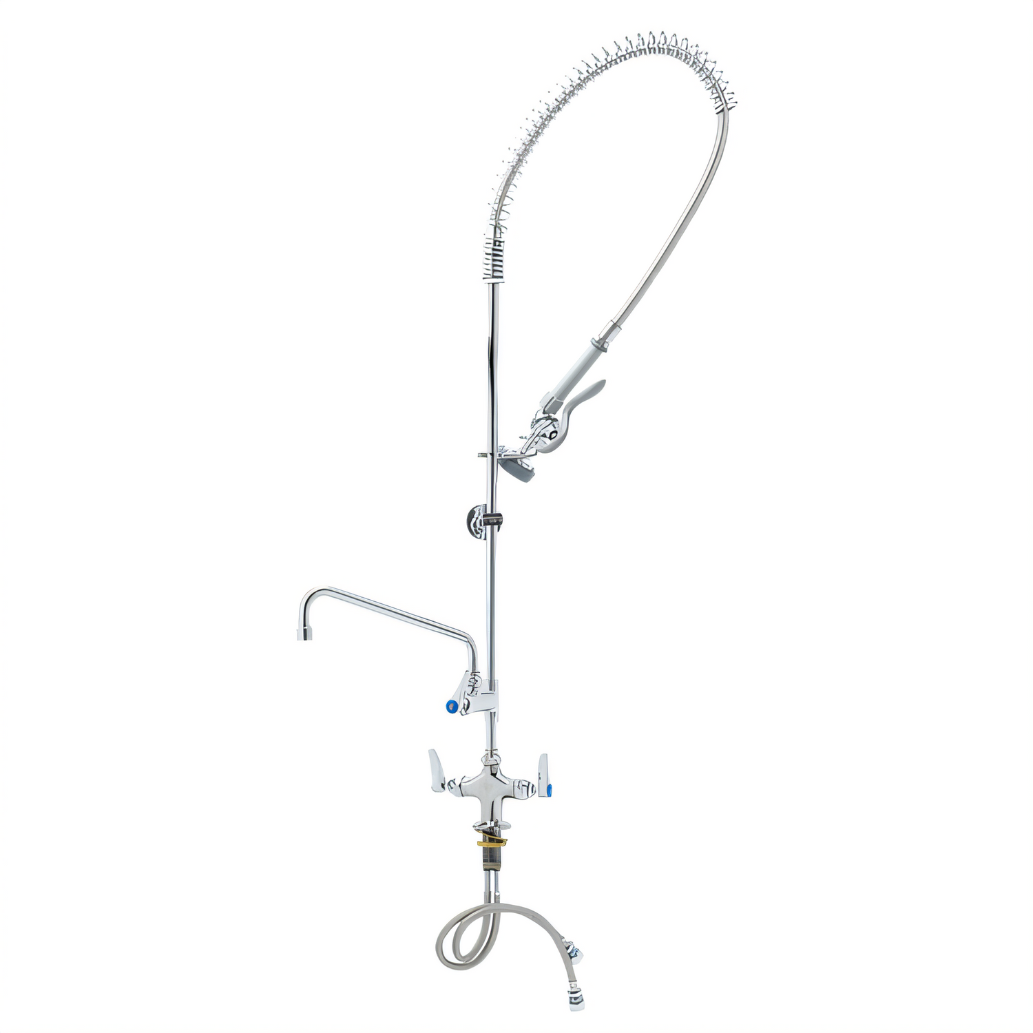 EasyInstall Pre-Rinse Unit, single hole base, deck mount, 10" add-on faucet, 1.15 GPM spray valve (B-0107), 44" flexible stainless steel hose, 18" flexible supply lines, 6" wall bracket, quarter-turn Eterna cartridges, low lead, 2019 DOE PRSV - Class II