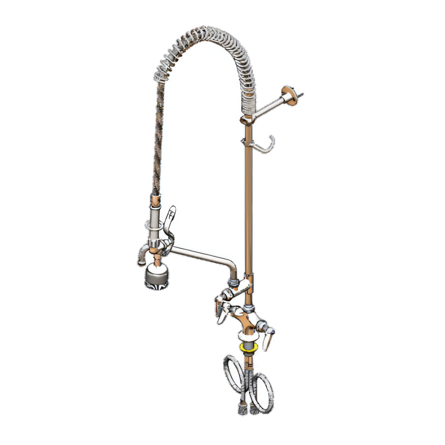 EasyInstall Pre-Rinse Unit, single hole deck mount, 10" add-on faucet, 1.15 GPM spray valve (B-0107) with bruch attachment, 44" flexible stainless steel hose, 36" flexible supply lines, supply hose-stops-elbows, wall bracket, quarter-turn Eterna cartridges, low lead, 2019 DOE PRSV - Class II