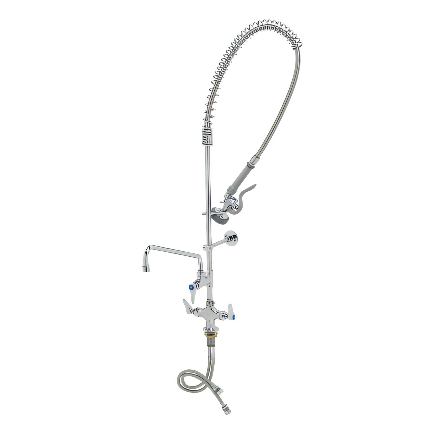 EasyInstall Pre-Rinse Unit, single hole base, deck mount, 12" add-on faucet, 1.15 GPM spray valve (B-0107), 44" flexible stainless steel hose, 18" flexible supply lines, 6" wall bracket, quarter-turn Eterna cartridges, low lead, 2019 DOE PRSV - Class II
