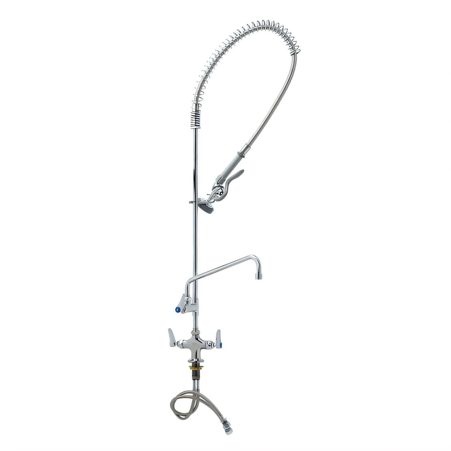 EasyInstall Pre-Rinse Unit, single hole base, deck mount, 12" add-on faucet, 1.15 GPM spray valve (B-0107), 44" flexible stainless steel hose, 18" flexible supply lines, quarter-turn Eterna cartridges, low lead, 2019 DOE PRSV - Class II