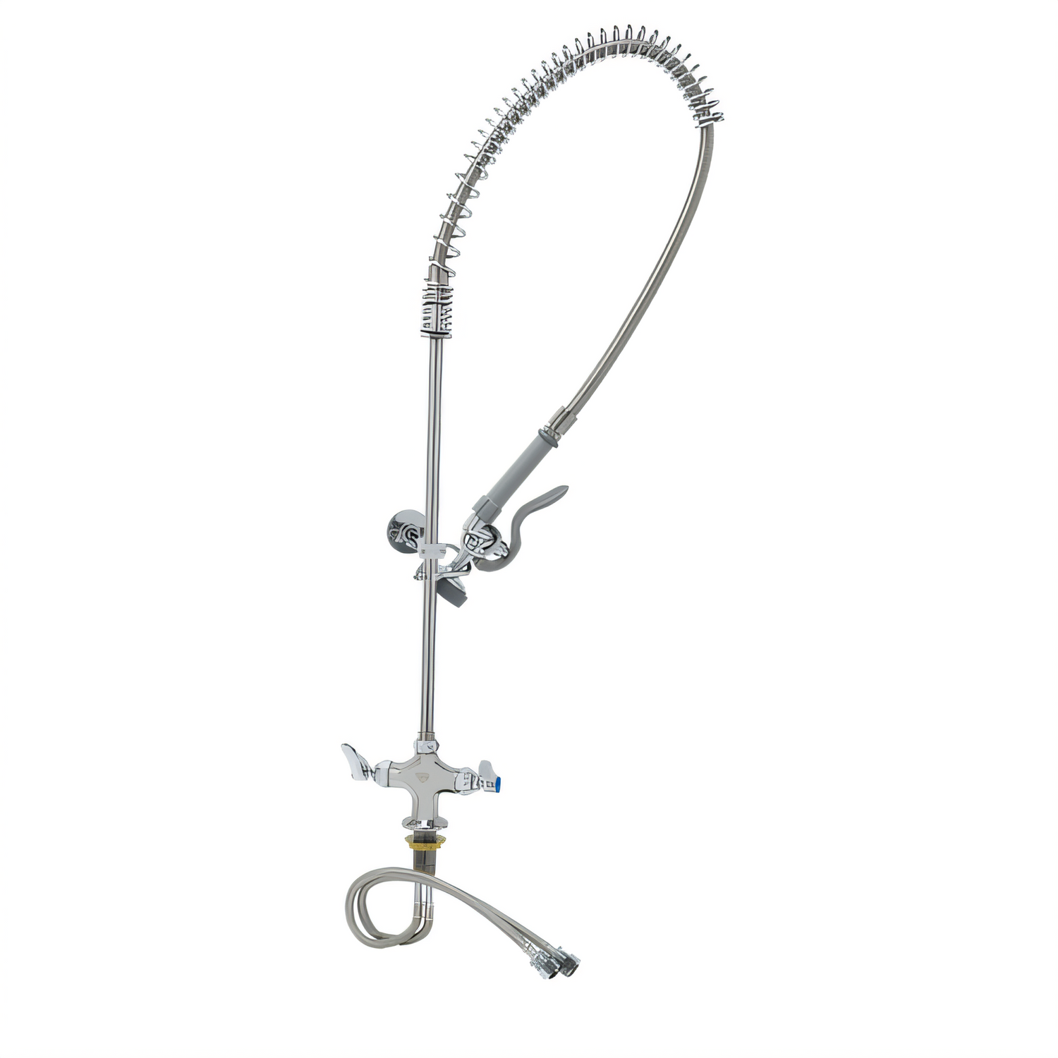 EasyInstall Pre-Rinse, spring action, single hole base, 1.15 GPM spray valve (B-0107), 44" flexible stainless steel hose, 20" riser, 18" flexible supply lines, 6" wall bracket, quarter-turn Eterna cartridges, low lead, 2019 DOE PRSV - Class II
