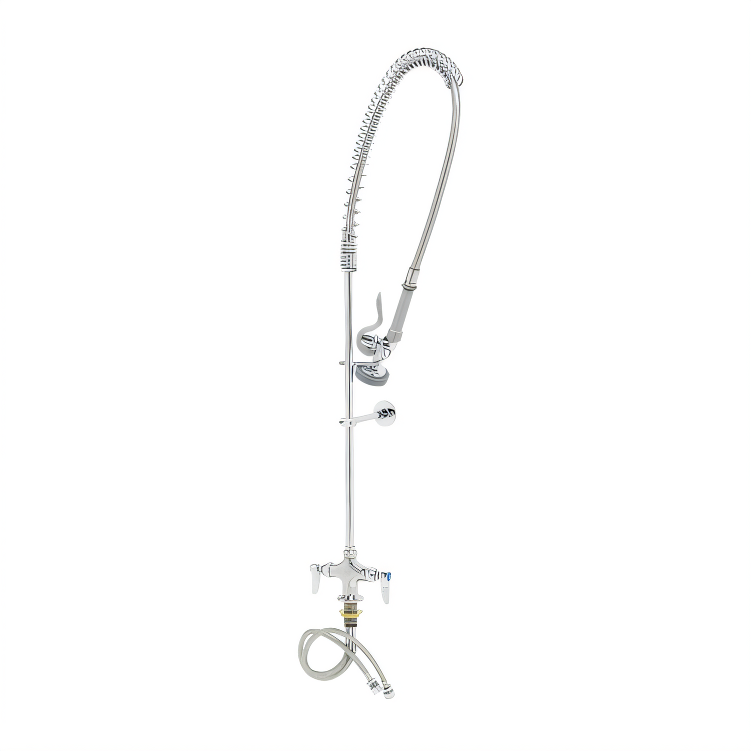 EasyInstall Pre-Rinse Unit, spring action gooseneck & hole base faucet, 1.15 GPM spray valve (B-0107), 44" flexible stainless steel hose, 24" riser, 18" flexible supply lines, 6" wall bracket, quarter-turn Eterna cartridges, low lead, 2019 DOE PRSV - Class II