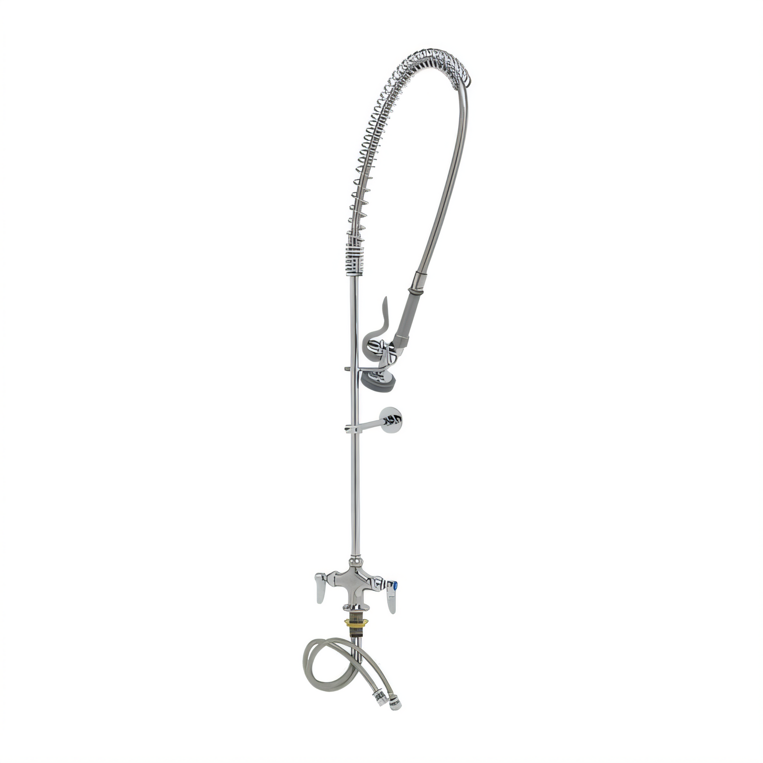 EasyInstall Pre-Rinse Unit, spring action gooseneck, single hole deck mount, 1.15 GPM spray valve (B-0107), 44" flexible stainless steel hose, 24" riser, 18" flexible supply lines, 6" wall bracket, quarter-turn Cerama cartridges, low lead, 2019 DOE PRSV - Class II