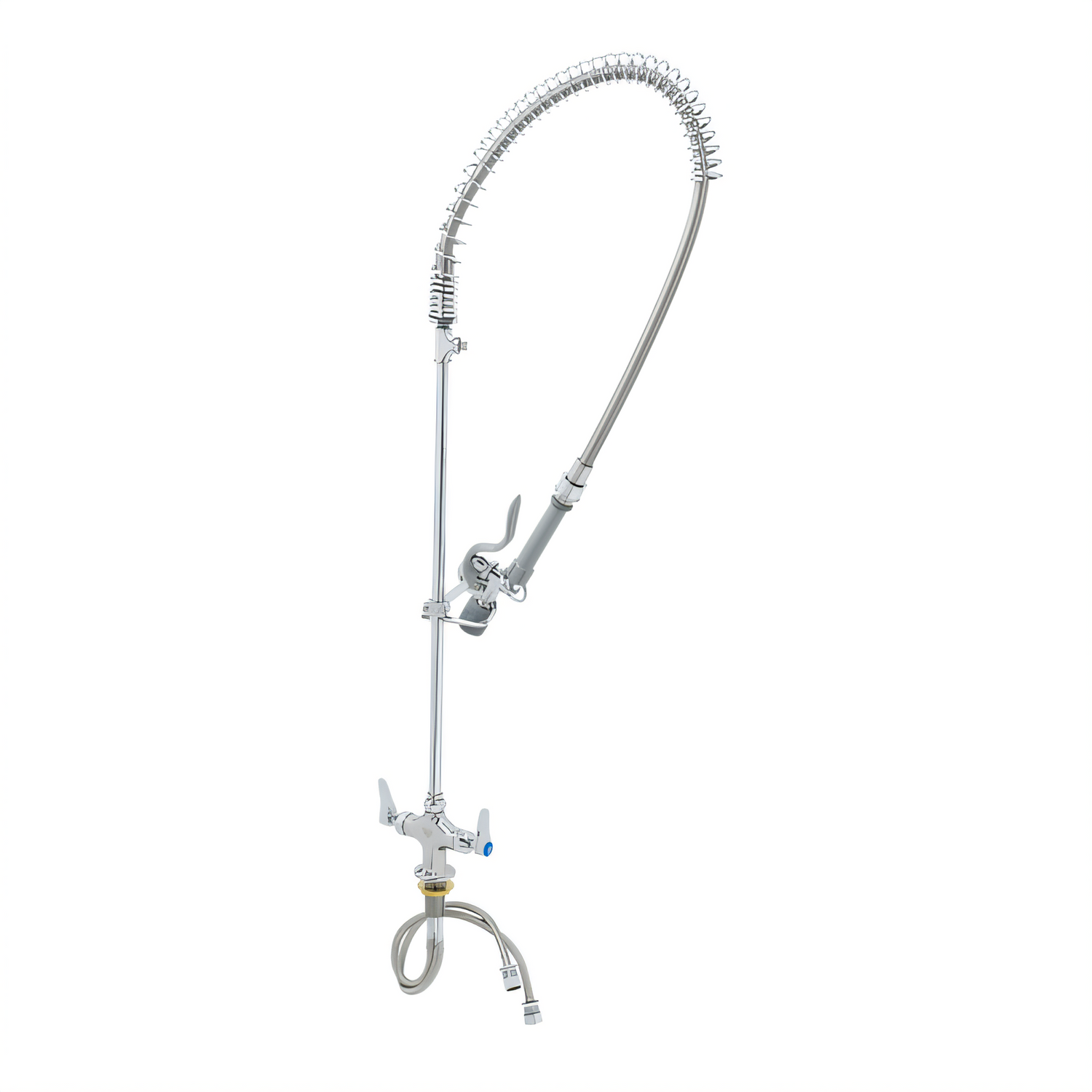 EasyInstall Pre-Rinse Faucet, deck mount, single hole base, 1.07 GPM swivel spray valve (B-0107-J), 44" flexible stainless steel hose, 24" riser, 18" flexible supply lines, 6" wall bracket, quarter-turn Cerama cartridges, accessory tee, low lead, 2019 DOE PRSV - Class II