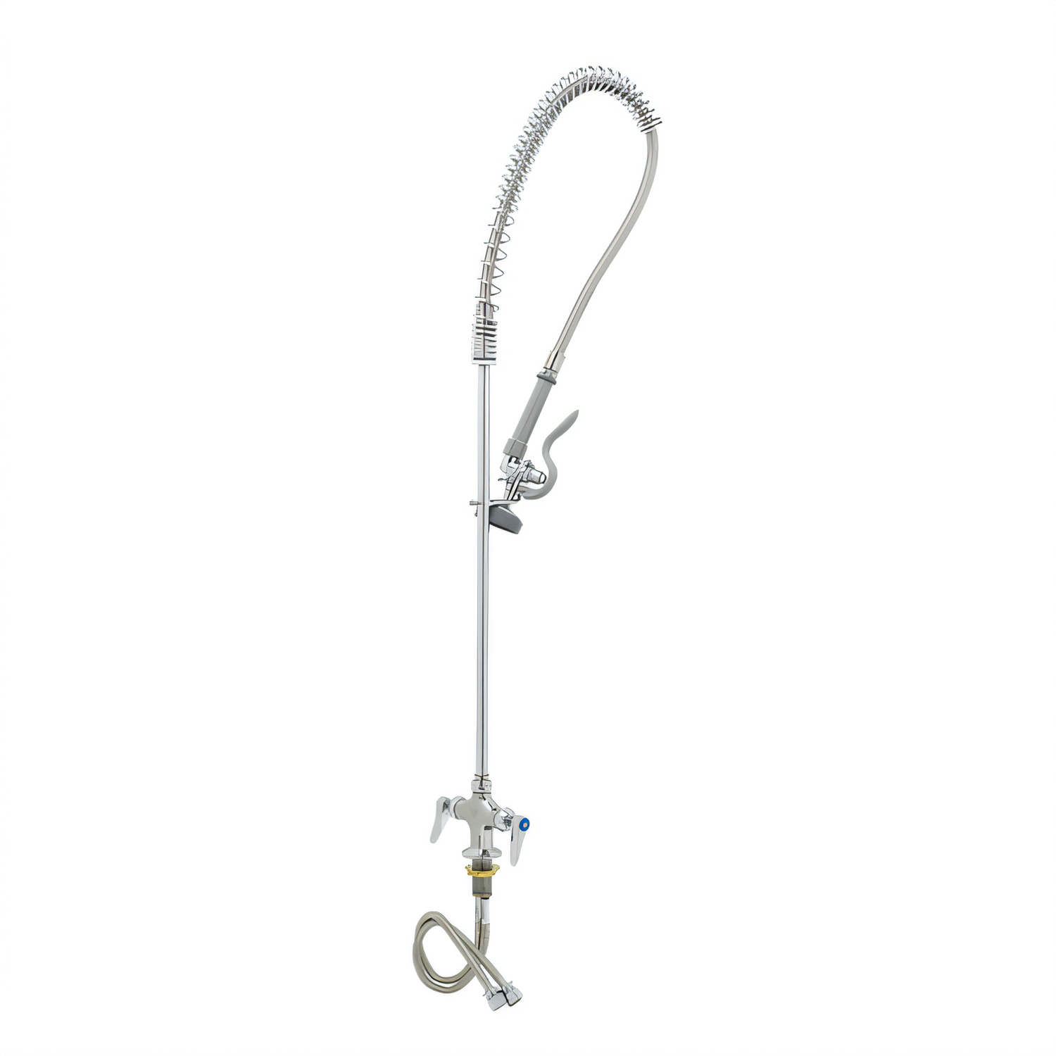 EasyInstall Pre-Rinse Unit, spring action gooseneck, single hole base faucet, 1.15 GPM spray valve (B-0107), 44" flexible stainless steel hose, 24" riser, 18" flexible supply lines, quarter-turn Cerama cartridges, low lead, 2019 DOE PRSV - Class II
