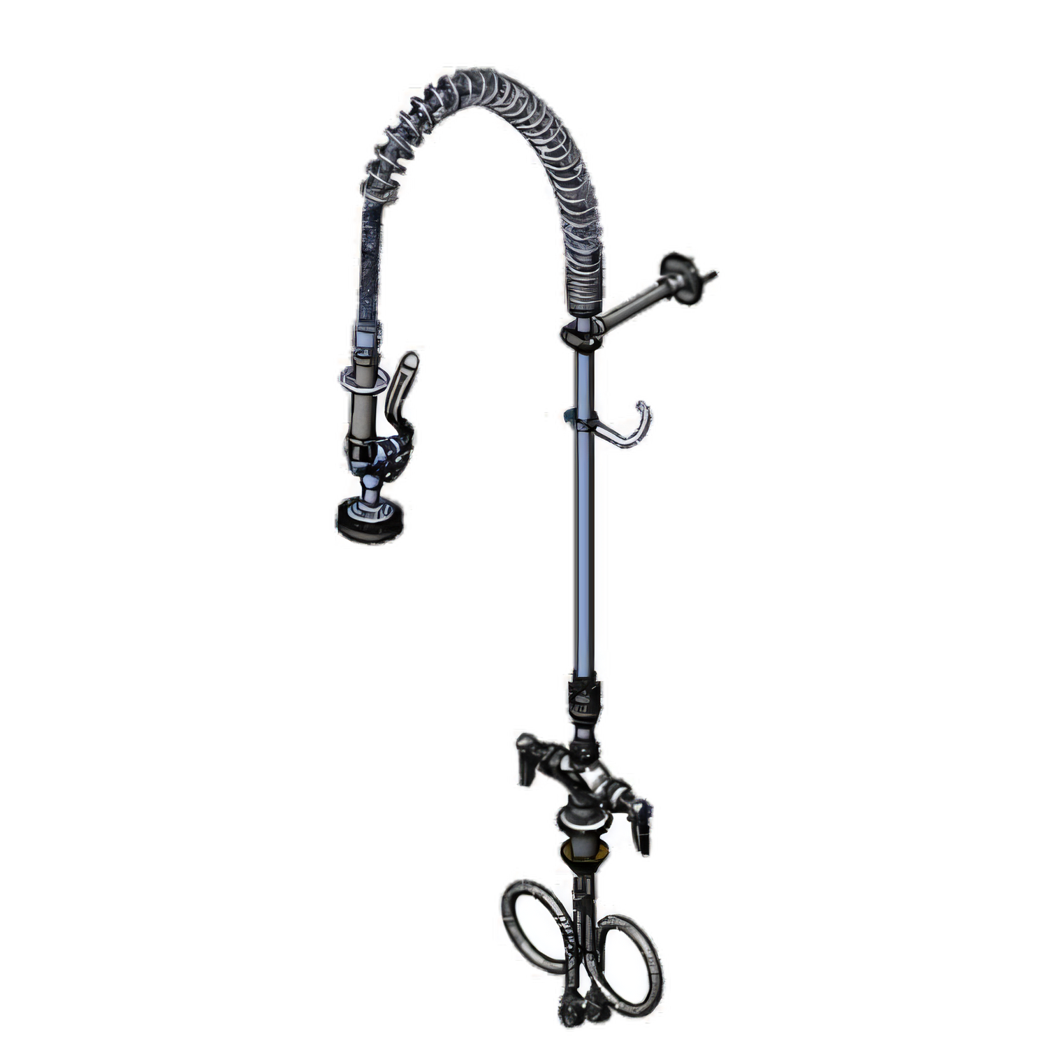 EasyInstall Pre-Rinse Unit, spring action, single hole base, vacuum breaker, 1.15 GPM spray valve (B-0107), 44" flexible stainless steel hose, 18" flexible supply lines, 6" wall bracket, quarter-turn Eterna cartridges, low lead, 2019 DOE PRSV - Class II