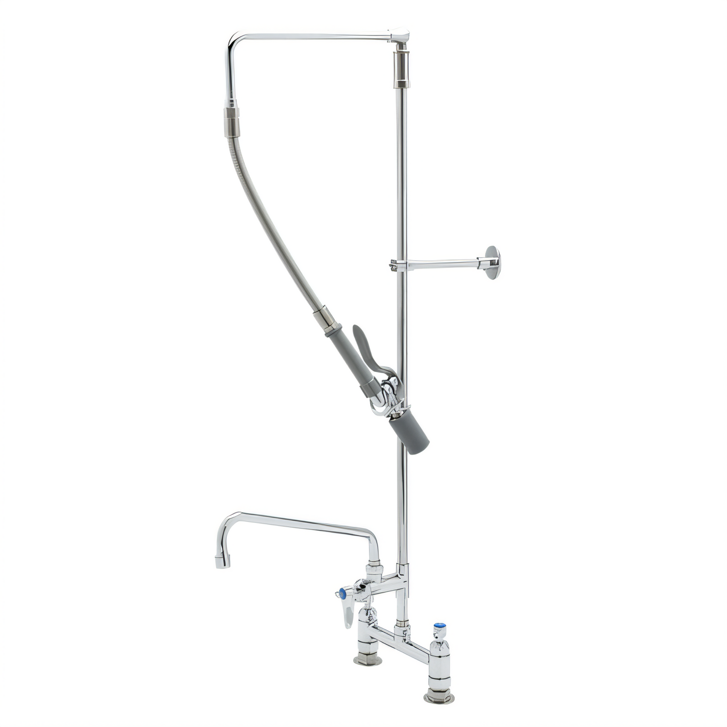 EasyInstall Pre-Rinse Unit, with add-on faucet, deck mount, 8" OC, 12" overhead swivel arm, 20" flexible stainless steel hose with B-0107-J spray valve, 32" riser, add-on faucet with 12" swing spout, lever handles, Cerama cartridges with check valves, 6" wall bracket, low lead, 2019 DOE PRSV - Class II