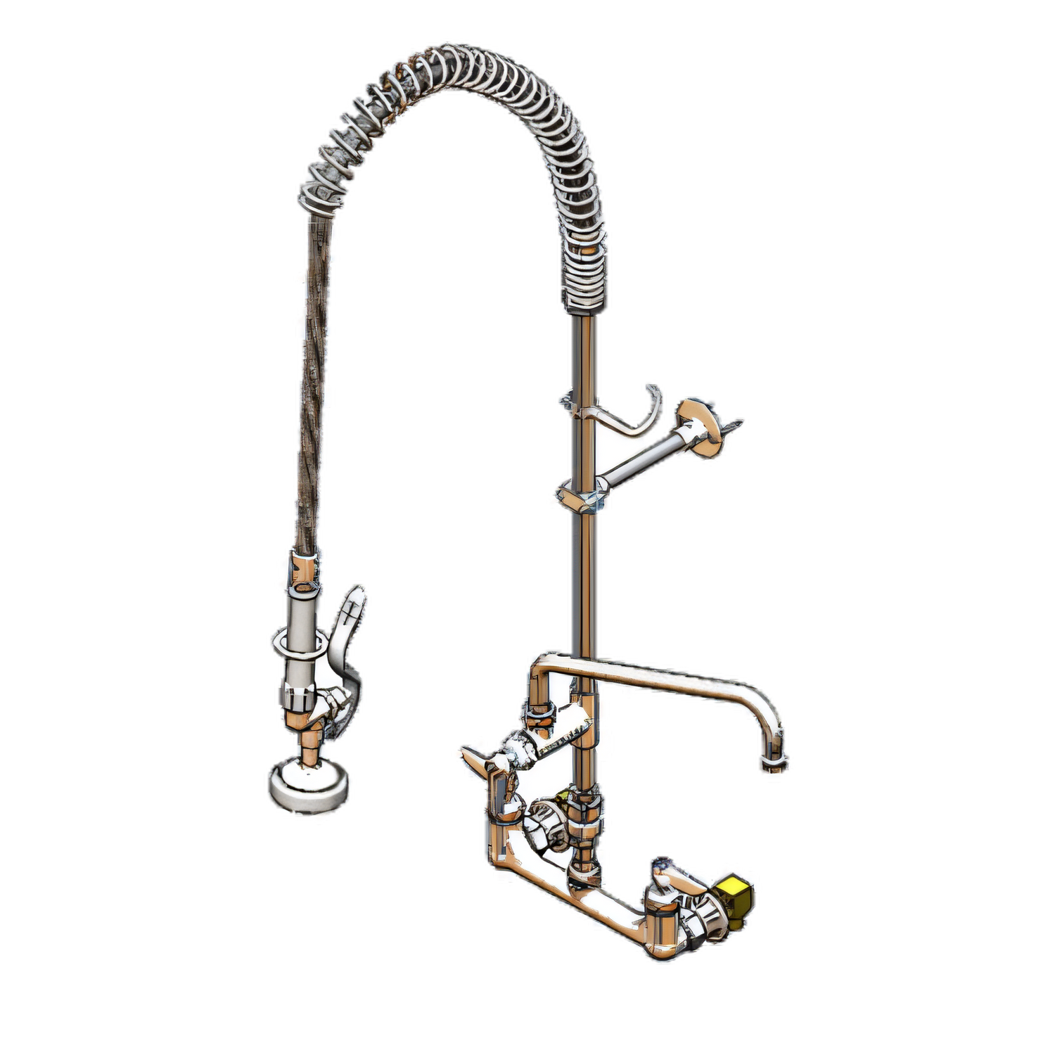 EasyInstall Pre-Rinse Unit, 8" wall mount, 12" swivel nozzle, vacuum breaker, 44" stainless steel flex hose, 18" riser, 6" wall bracket, ceramic cartridge, lever handle, low lead, stream regulator tip, add-on faucet, 1.15 GPM spray valve, 1/2" NPT, EPAct2005 compliant, NSF (B-0107) (B-0230-K)