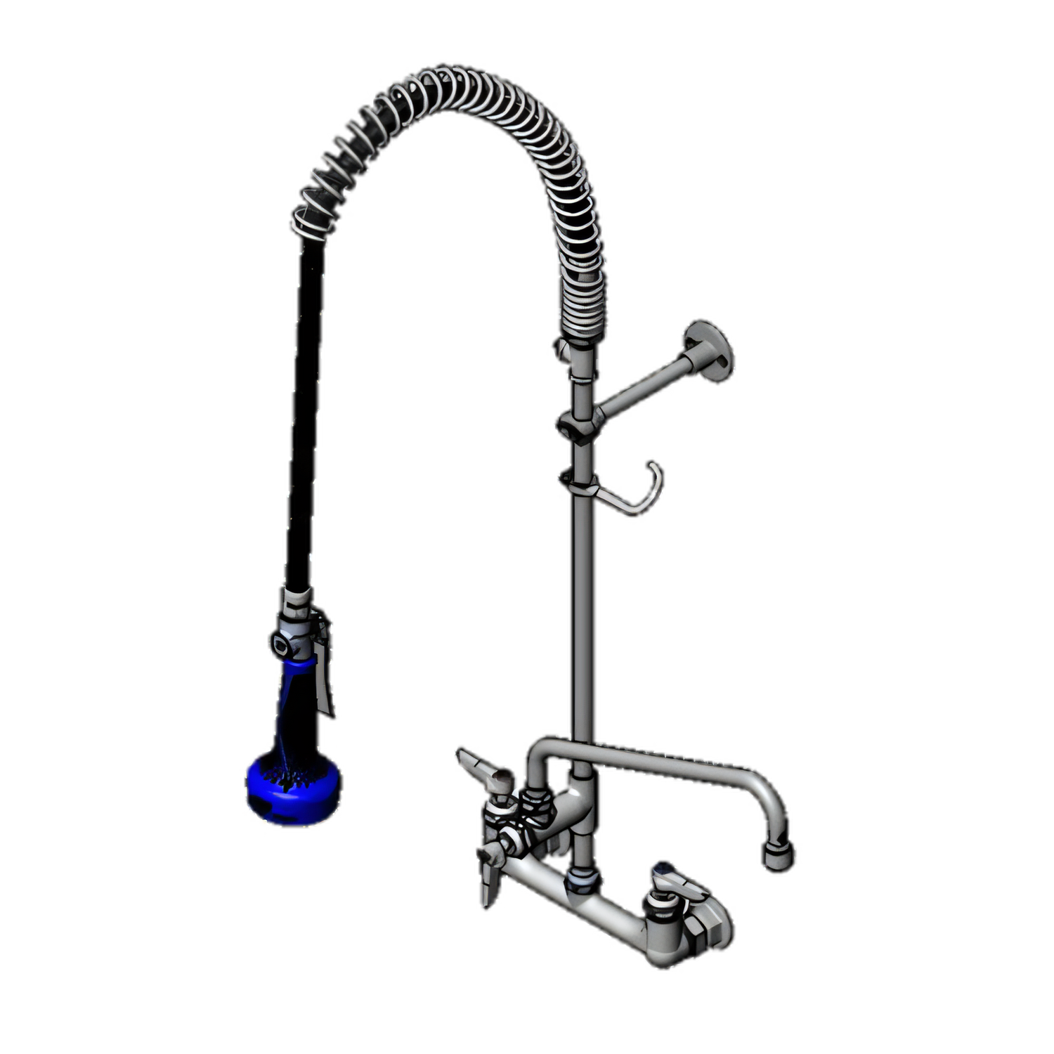 Pre-Rinse Unit, with add-on faucet, splash/wall mount, 8" OC, 44" flexible stainless steel hose with B-0108 JeTSpray valve, 18" riser, add-on faucet with 12" swing spout (includes 2.2 gpm VR aerator), lever handles, Cerama cartridges with check valves, 6" wall bracket, accessory fitting tee, low lead