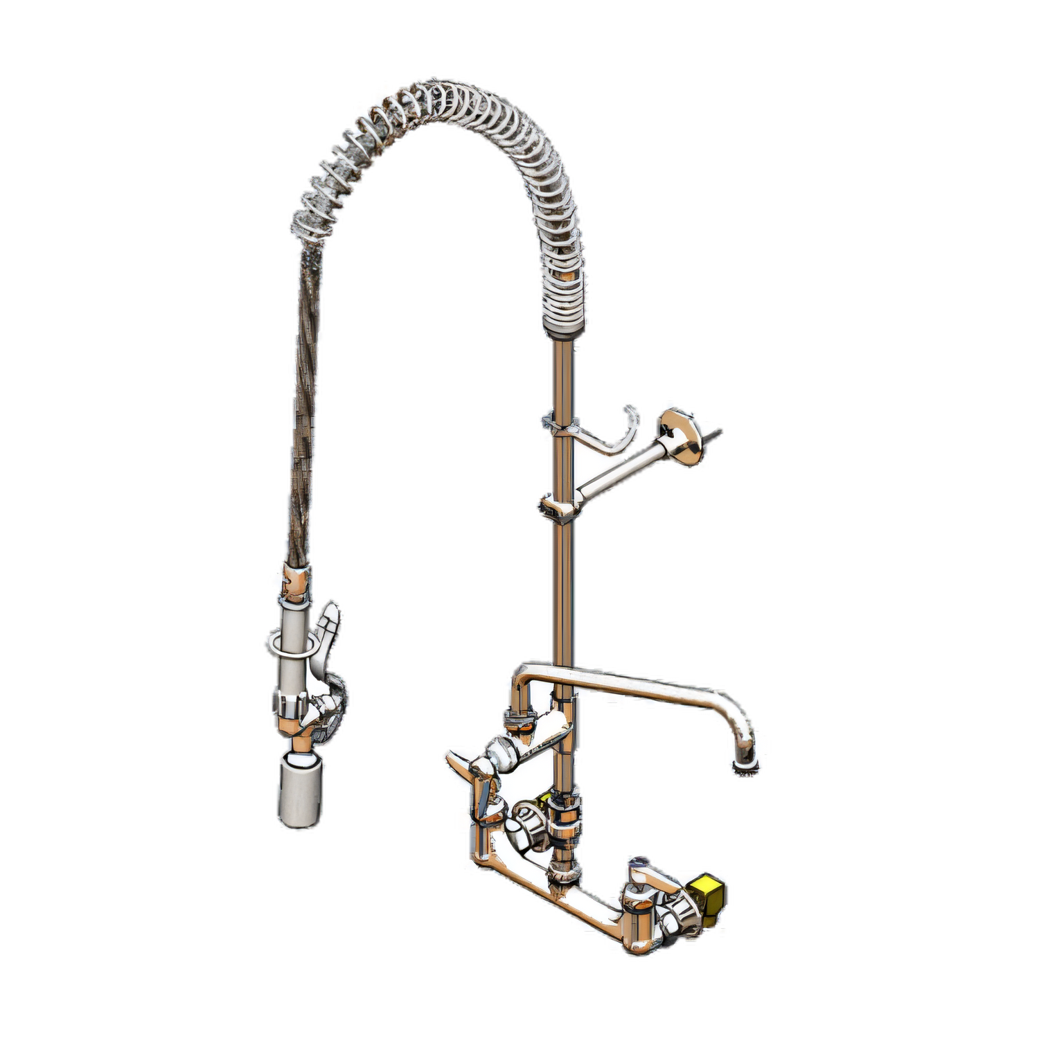 EasyInstall Pre-Rinse Unit, 8" wall mount, 12" swivel nozzle, vacuum breaker, 44" stainless steel flex hose, 18" riser, 6" wall bracket, ceramic cartridge, lever handle, low lead, stream regulator tip, add-on faucet, .65 GPM low flow spray valve, 1/2" NPT, EPAct2005 compliant, NSF (B-0107-C) (B-0230-K)