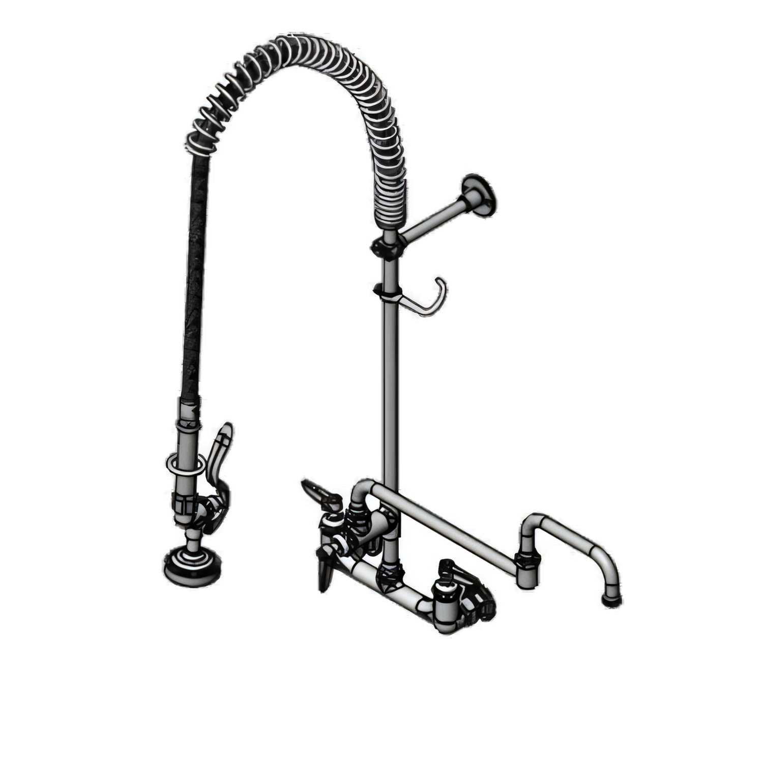 EasyInstall Pre-Rinse Unit, 8" wall mount, adjustable centers, 18" double joint nozzle add-on faucet, quarter-turn Cerama cartridges with check valves, lever handles with color coded indexes, 18" rigid riser, 44" flexible stainless steel hose, 1.15 GPM spray valve, 6" adjustable wall bracket, 1/2" NPT, low lead, NSF, cCSAus