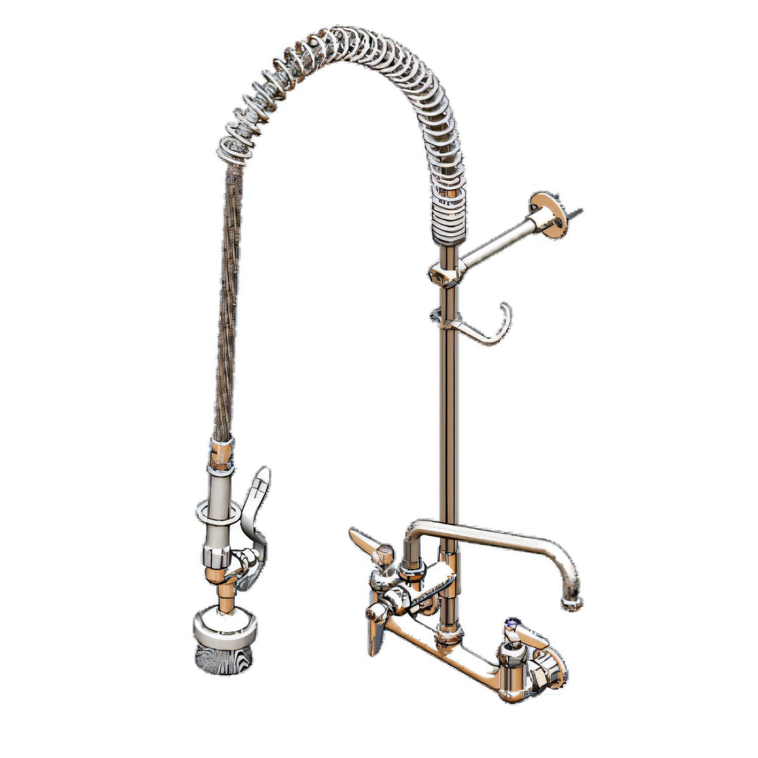 EasyInstall Pre-Rinse Unit, with adjustable wall bracket, wall mount base, 8" centers, 36" flexible hose with spring body & brush attachment, 18" riser, add-on faucet with 12" swing nozzle, lever handles, 1/2" NPT female inlets, includes supply stops & supply hoses, quarter-turn Eterna cartridges, low lead