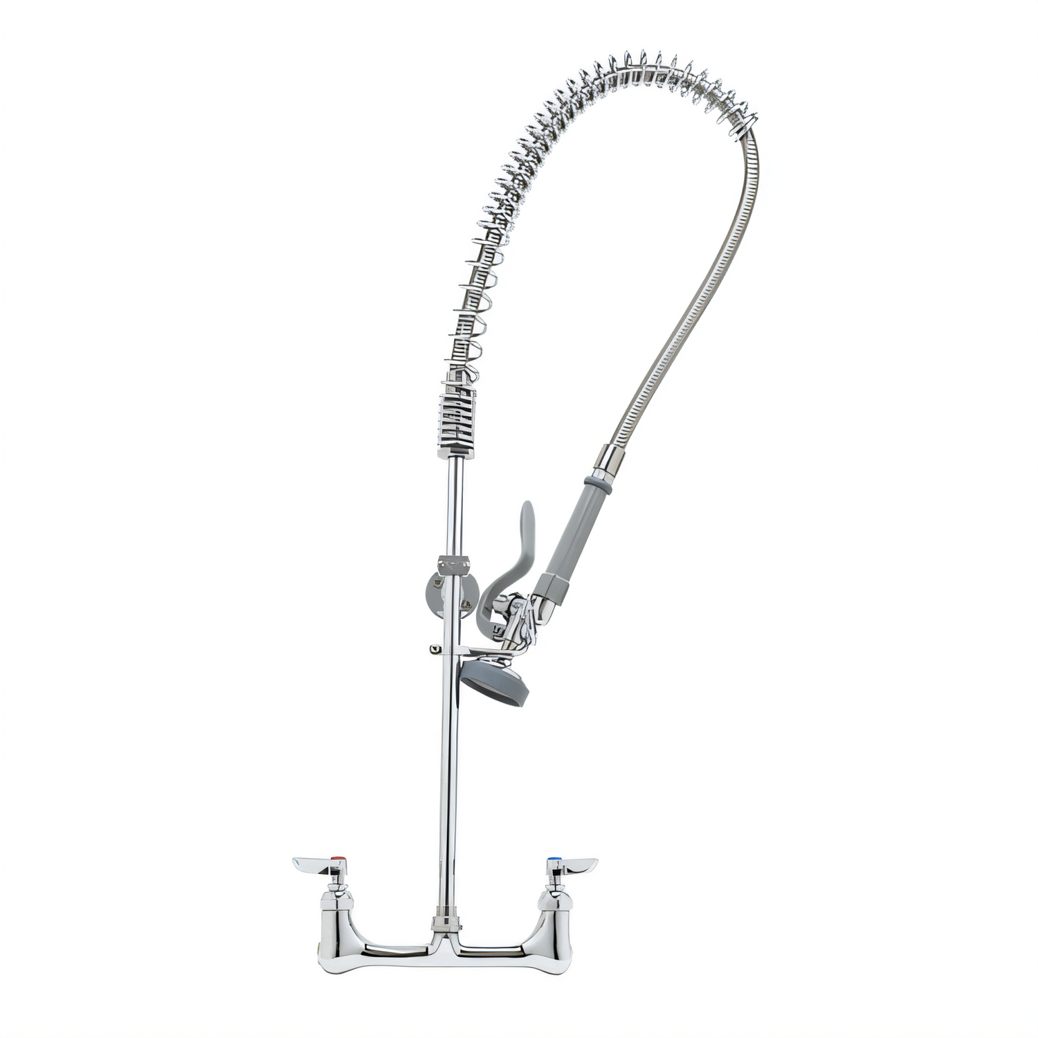 EasyInstall Pre-Rinse Unit, spring action, wall mount, 8" c/c, 1/2" NPT male inlets, wall bracket, quarter-turn Eterna cartridges, low lead