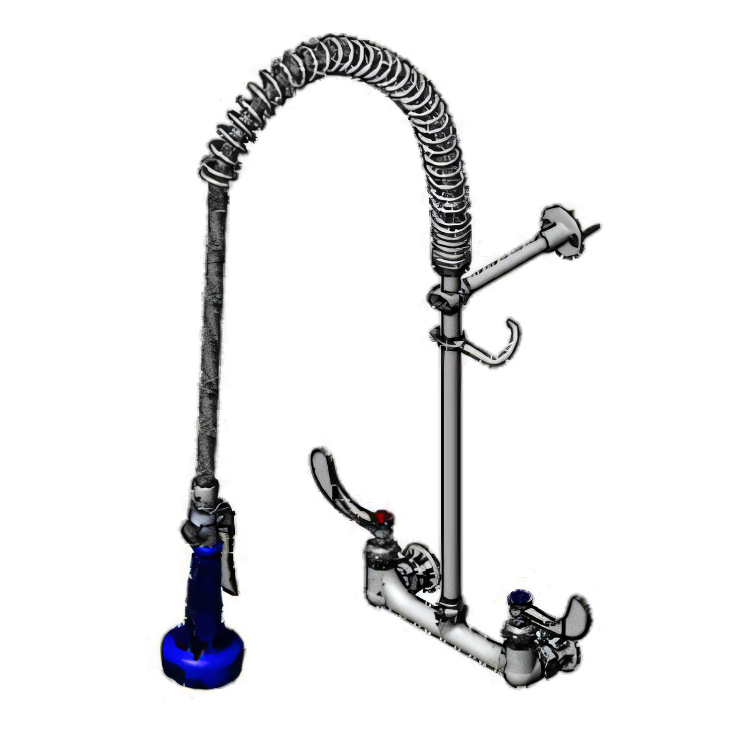 EasyInstall Pre-Rinse Unit, 8" wall mount, 44" flex hose, 6" wall bracket, 18" riser, overhead spring, ceramic cartridge, 4" wrist handles, 1.07 GPM spray valve, 1/2" NPT, EPAct2005 compliant, (B-0108)