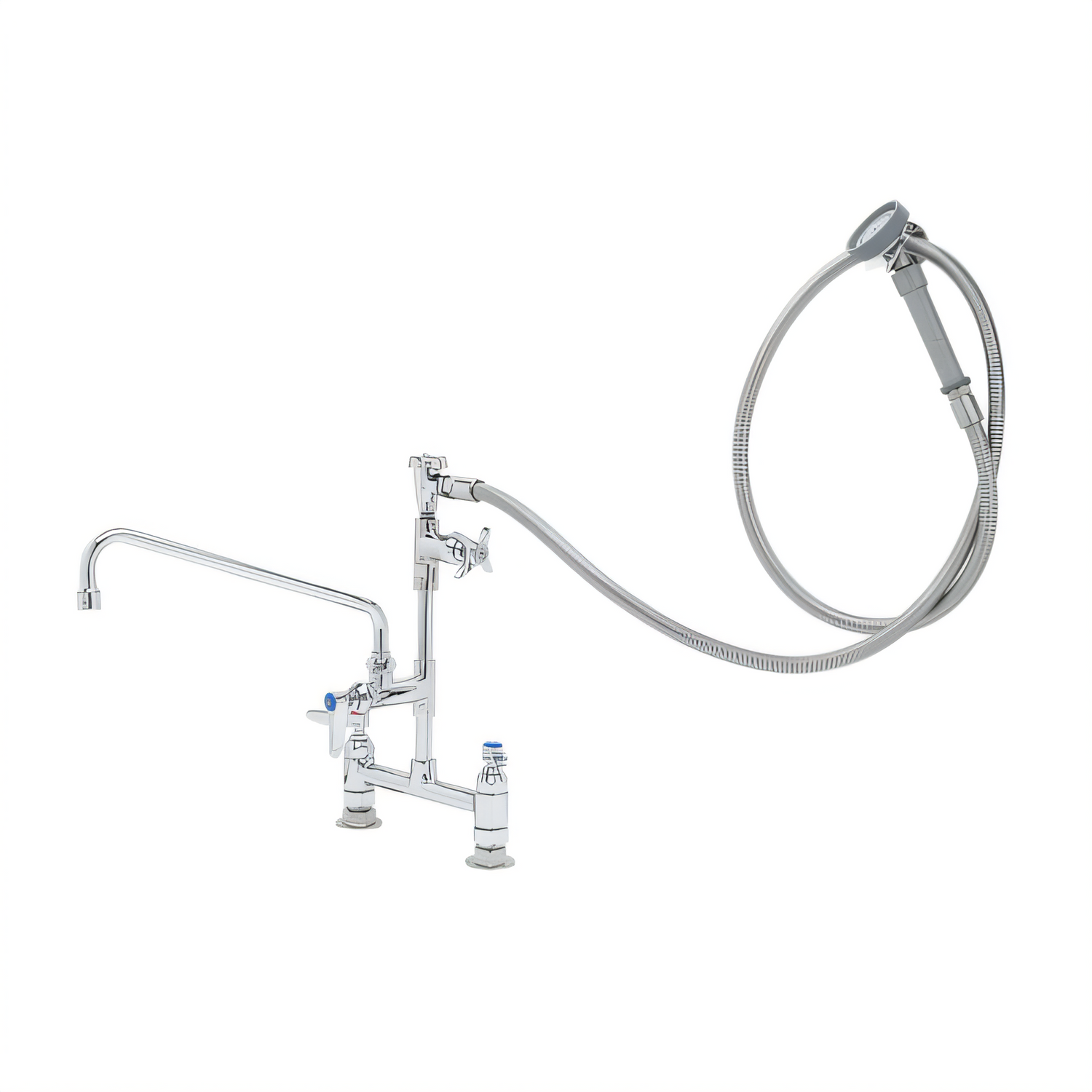 Spray Unit/Swing Spout Faucet, deck mount 8" OC type mixing valve, 12" swing nozzle, angle manual control spray valve, vacuum breaker, hanger hook, 72" stainless steel flexible hose, 1/2" IPS female inlets, quarter-turn Eterna cartridges, low lead