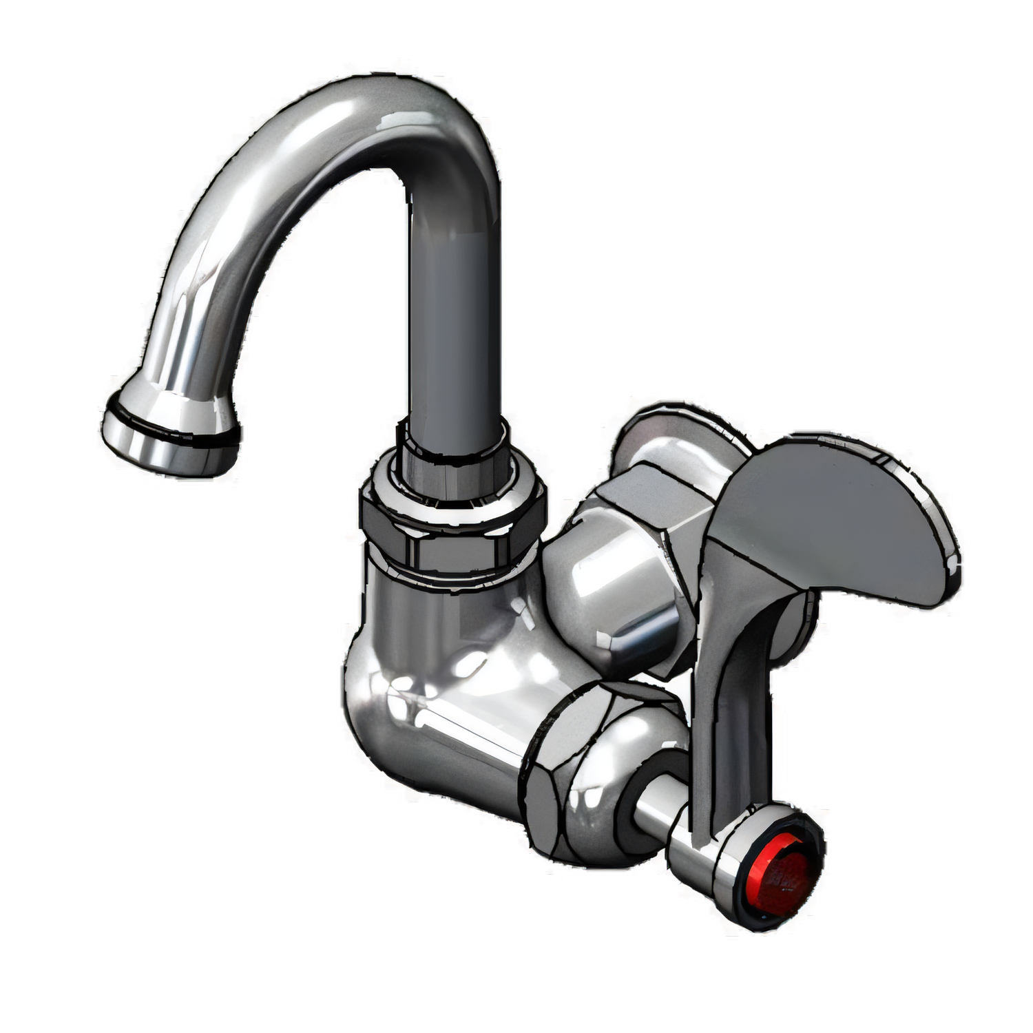 Sink Faucet, single, wall mounted, 1/2" NPT female inlet, 3" swivel gooseneck, with steam regulator, Cerama cartridge, 4" wrist action handle with color coded (HW) index, low lead, ADA Compliant