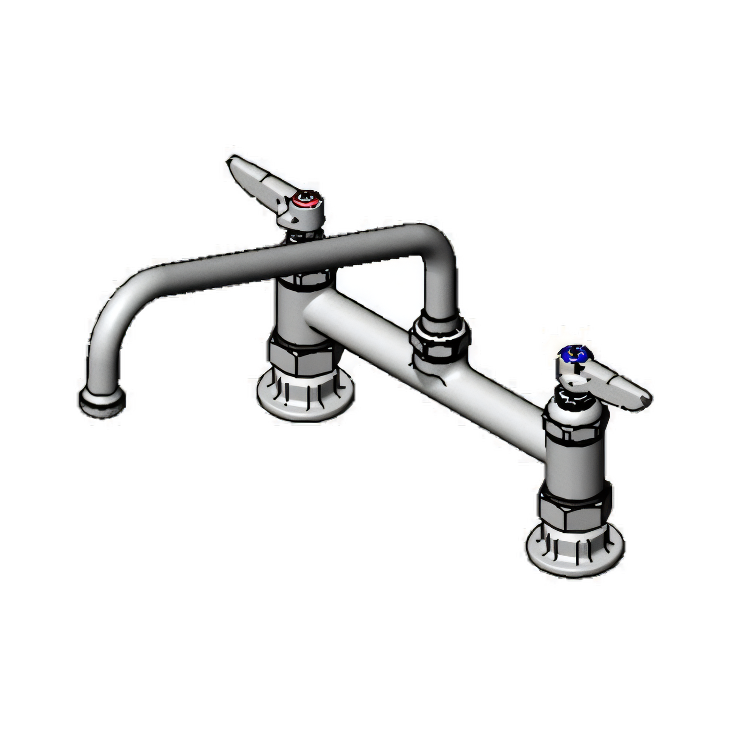 T&S Brass Pantry Mixing Faucet (B-0220-061X) — Commercial double deck-mount faucet with 8" centers and a 10" swing nozzle for flexible reach. Features ADA-compliant lever handles, quarter-turn Eterna cartridges with spring checks, stream regulator tip, 1/2" NPT connections, and low-lead construction for reliable, code-compliant performance in busy kitchens.