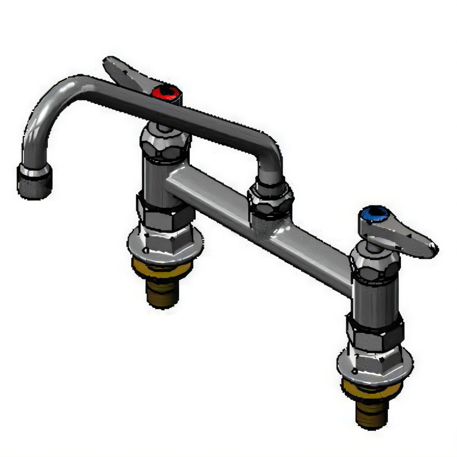 Mixing Faucet, deck mount, 8" adjustable center, 9" swing nozzle with stream regulator outlet (166X), lock washer included, quarter-turn Cerama cartridges with check valves, lever handles with color coded indexes, polished chrome-plated brass body, 1/2" NPT female inlets, includes 1/2" NPT supply nipple kit, low lead content, ADA Compliant