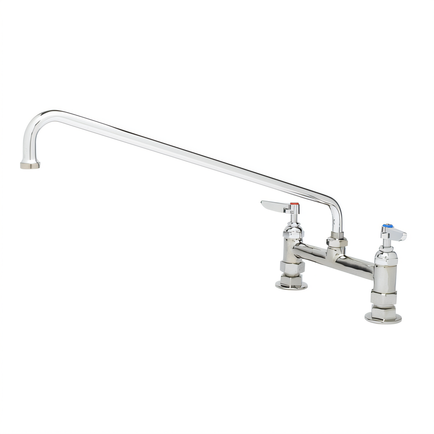 Mixing Faucet, deck mount, 18" swing nozzle, 8" centers on deck faucet with 1/2" IPS eccentric flanged female inlets, quarter-turn Eterna cartridges with spring checks, lever handles, low lead, ADA Compliant