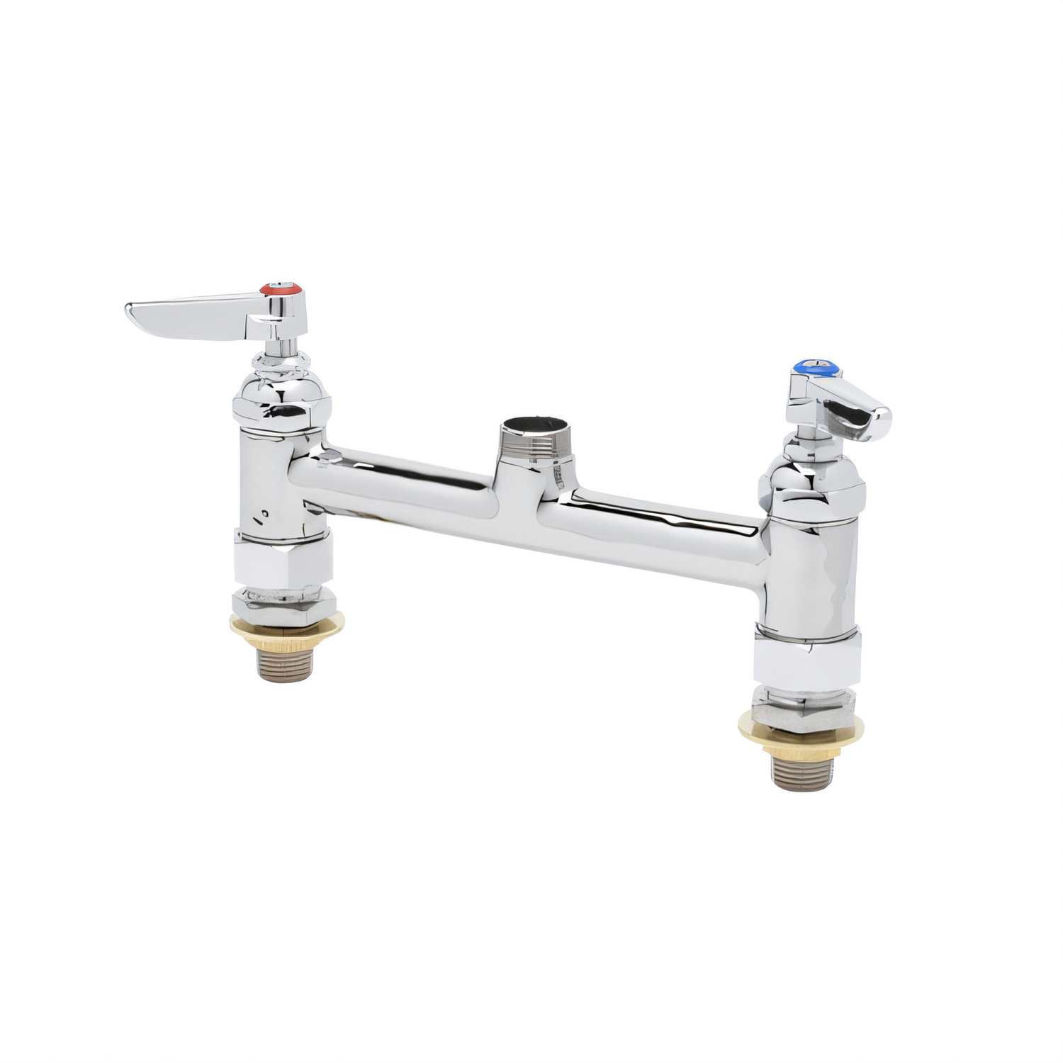 Pantry, double, swivel base faucet, 8" centers, deck mount, 1/2" NPT male inlet, less nozzle, quarter-turn Eterna cartridges with spring checks, lever handles, low lead, ADA Compliant