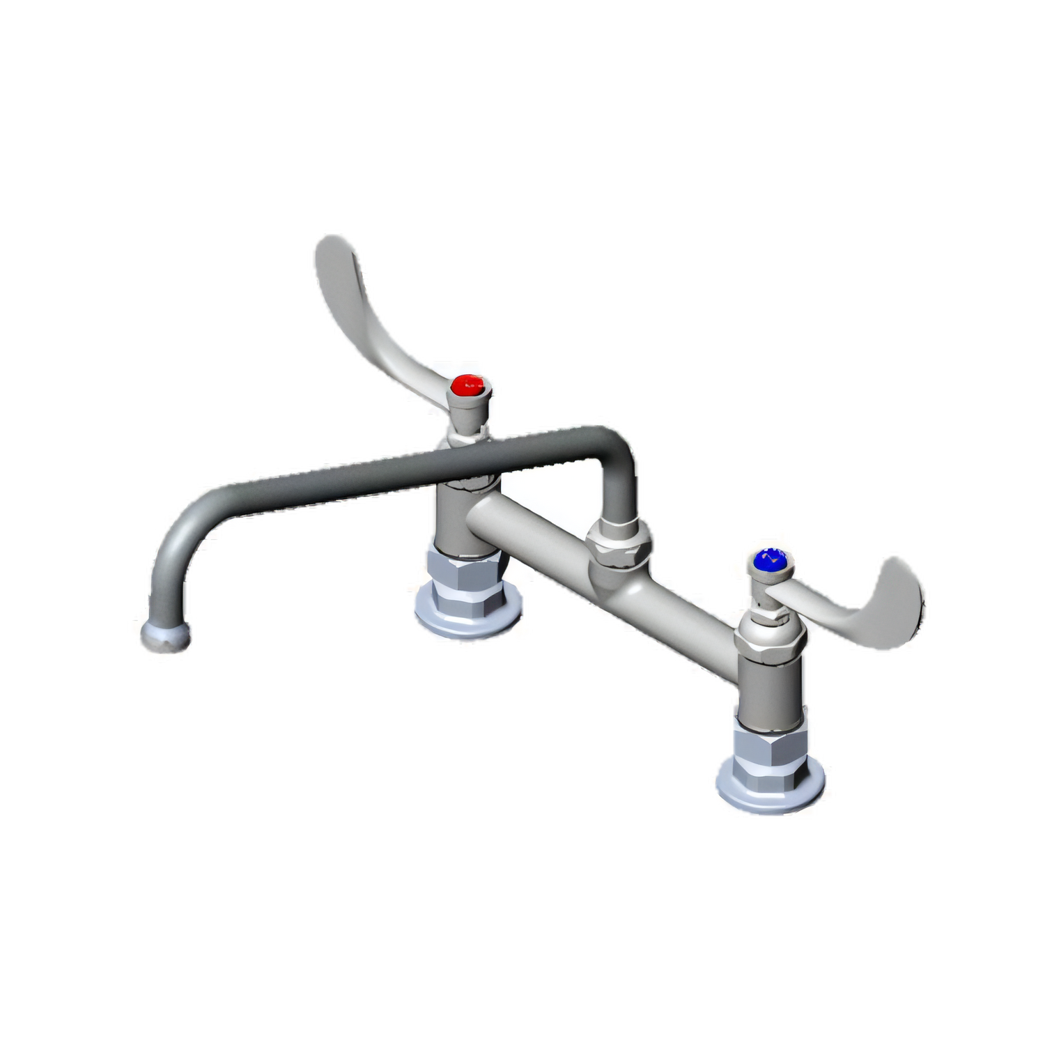 Pantry Mixing Faucet, double, deck mount, 8" adjustable centers, 12" swing nozzle (062X), 4" wrist handles with color-coded indexes, stream regulator tip, quarter-turn Eterna cartridges with spring checks, adjustable flange, polished chrome-plated body, 1/2" NPT, low lead content, ADA Compliant