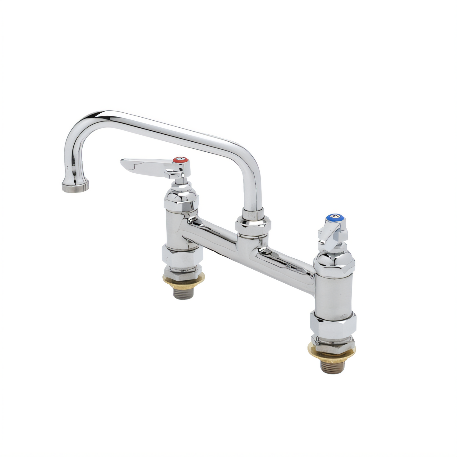 Mixing Faucet, deck mount, 6" swing nozzle, 8" centers on deck faucet with 1/2" IPS CC male inlets, quarter-turn Eterna cartridges with spring checks, lever handles, low lead content, ADA Compliant