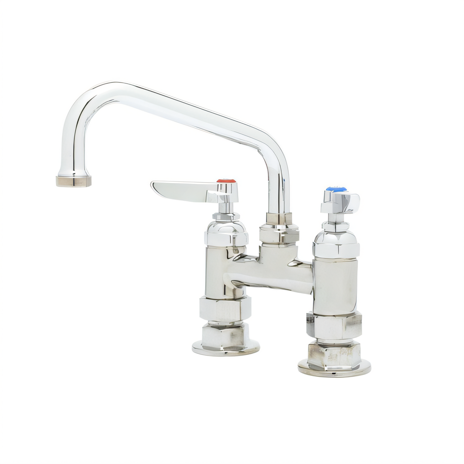 Mixing Faucet, deck mount, 8" swing nozzle, 4" centers with 1/2" IPS eccentric flanged female inlets, quarter-turn Eterna cartridges, lever handles, 1/2" NPT, low lead, ADA Compliant