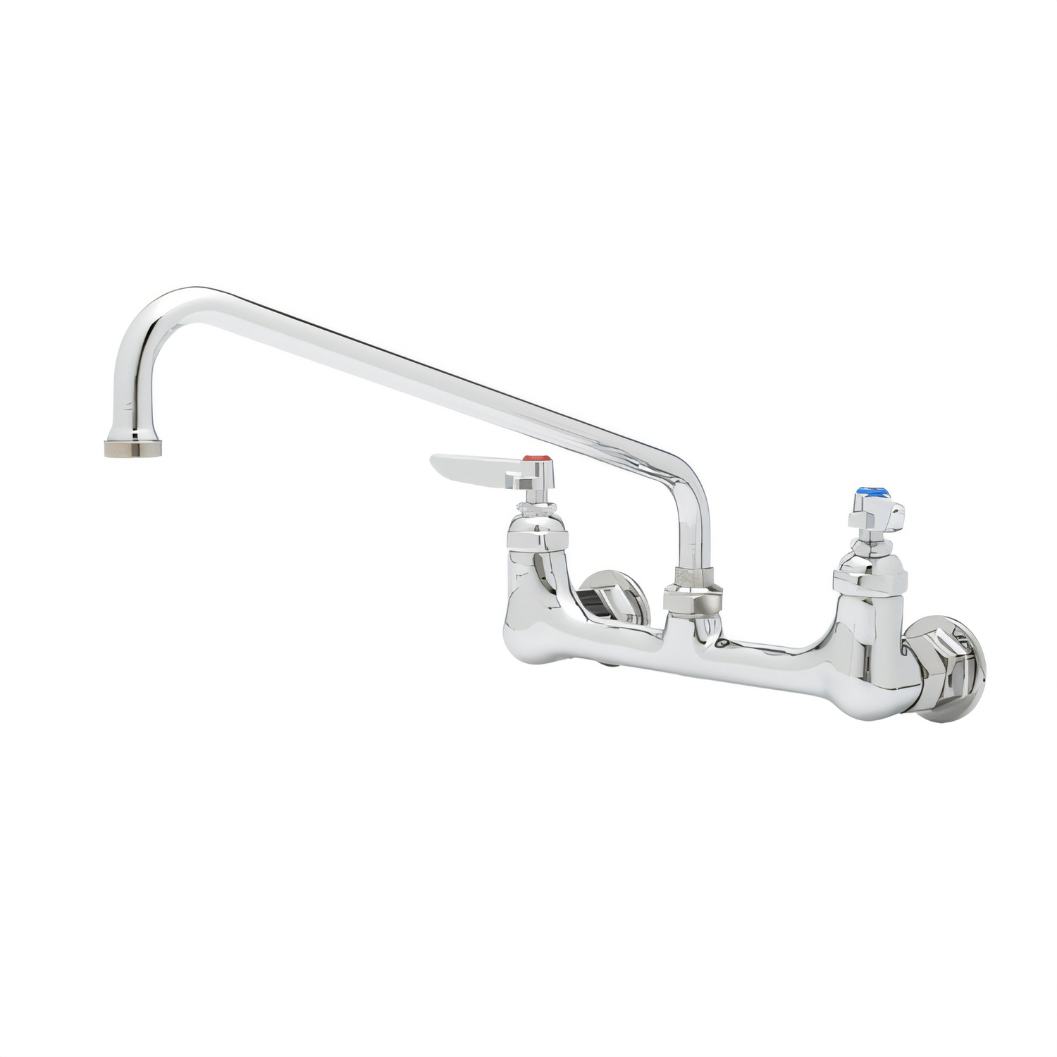 Faucet, 8" OC wall mount base, 1/2"NPT female inlets, 18" swivel nozzle, 2.2 GPM aerator, lever handles, quarter-turn Eterna cartridges, low lead, ADA Compliant