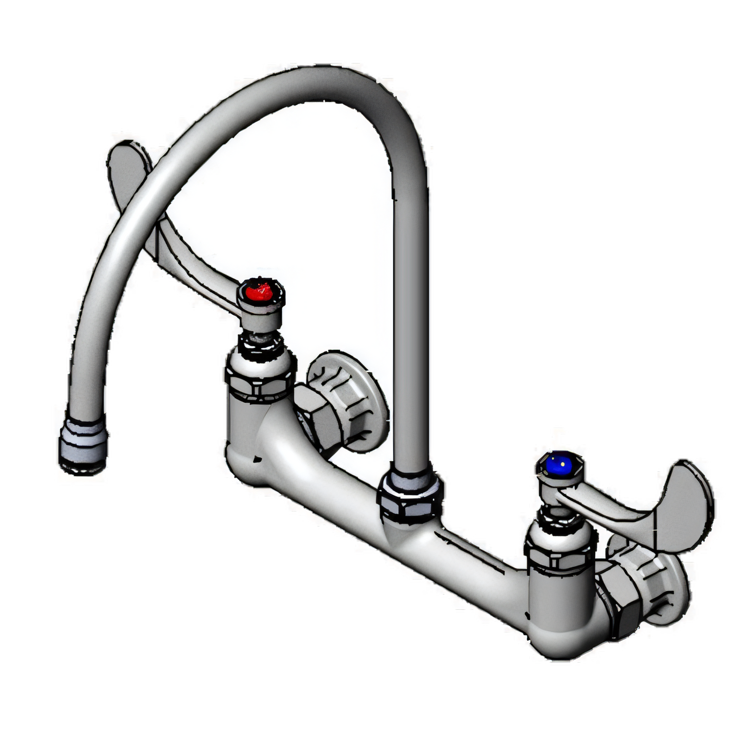 Pantry Mixing Faucet, double, wall mount, 8" centers, 9" swivel gooseneck, 4" wrist handles, stream regulator outlet, quarter-turn Eterna cartridges, 1/2" NPT, low lead, ADA Compliant