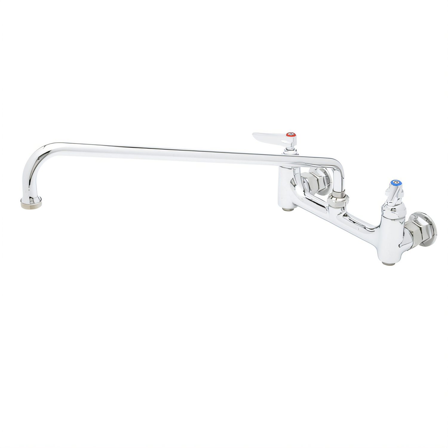 Sink Mixing Faucet, 18" swing nozzle, wall mounted, 8" centers on sink faucet with 1/2" IPS eccentric flanged female inlets, lever handles, built-in stops, Eterna cartridges, low lead, ADA Compliant