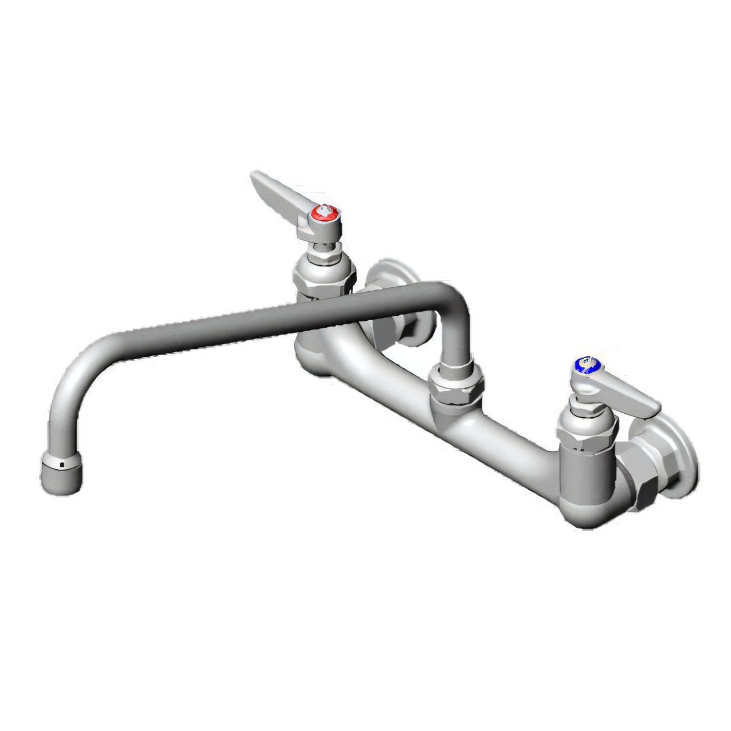 Pantry Mixing Faucet, double, wall mount, 8" centers, 12" swing nozzle, lever handles, quarter-turn Eterna cartridges, 2.2 GPM aerator, check valve, 1/2" NPT, low lead, ADA Compliant, ADA Compliant