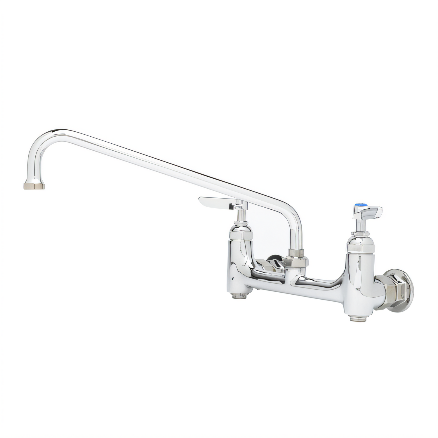 Sink Mixing Faucet, 12" swing nozzle, wall mounted, 8" centers on sink faucet with 1/2" IPS eccentric flanged female inlets, lever handles, built-in stops, Eterna cartridges, low lead, ADA Compliant