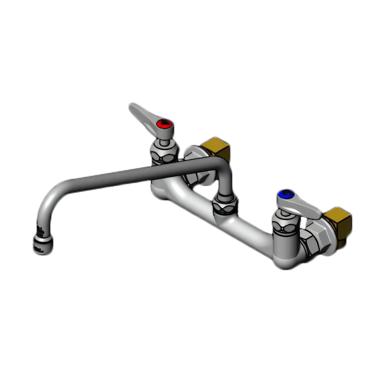 Mixing Faucet, wall mount, 8" adjustable centers, quarter-turn Cerama cartridges with check valves, chrome-plated lever handles with color coded indexes, 12" swing nozzle with 1.5 GPM aerator (Series 1), (2) 24" flexible stainless steel hoses, polished chrome-plated brass body, 1/2" NPT male inlets, low lead compliant, ADA Compliant, cCSAus