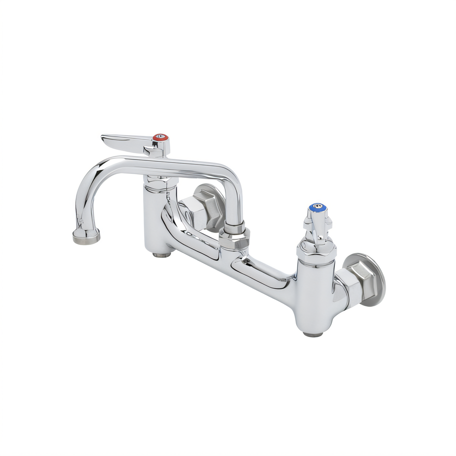 Sink Mixing Faucet, 6" swing nozzle, wall mounted, 8" centers on sink faucet with 1/2" IPS eccentric flanged female inlets, lever handles, built-in stops, Eterna cartridges, low lead, ADA Compliant