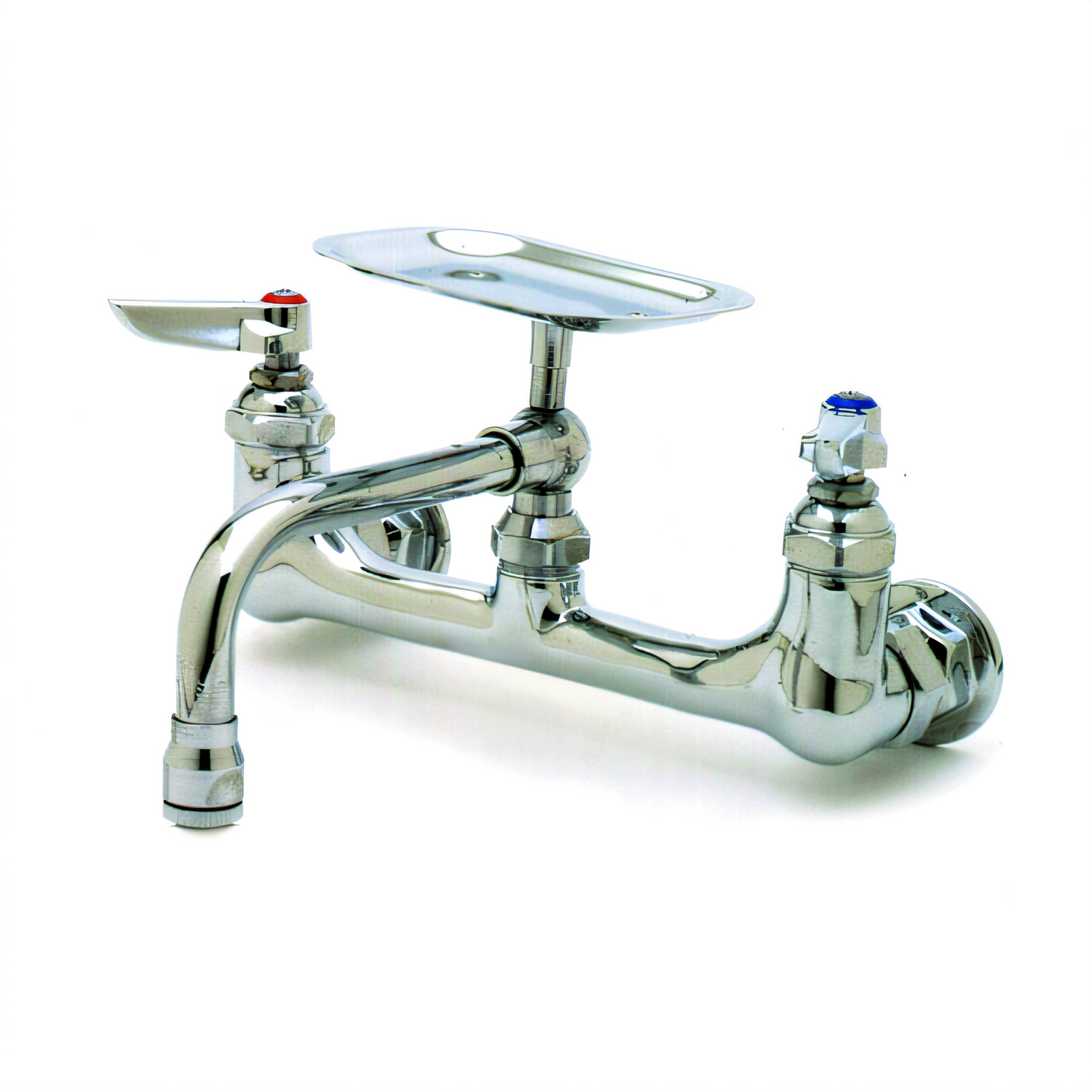 Sink Mixing Faucet, wall mounted, 160 x 6" soap dish nozzle, aerator, 8" centers with 1/2" IPS eccentric female inlets, lever handles, quarter-turn Eterna cartridges, low lead, ADA Compliant