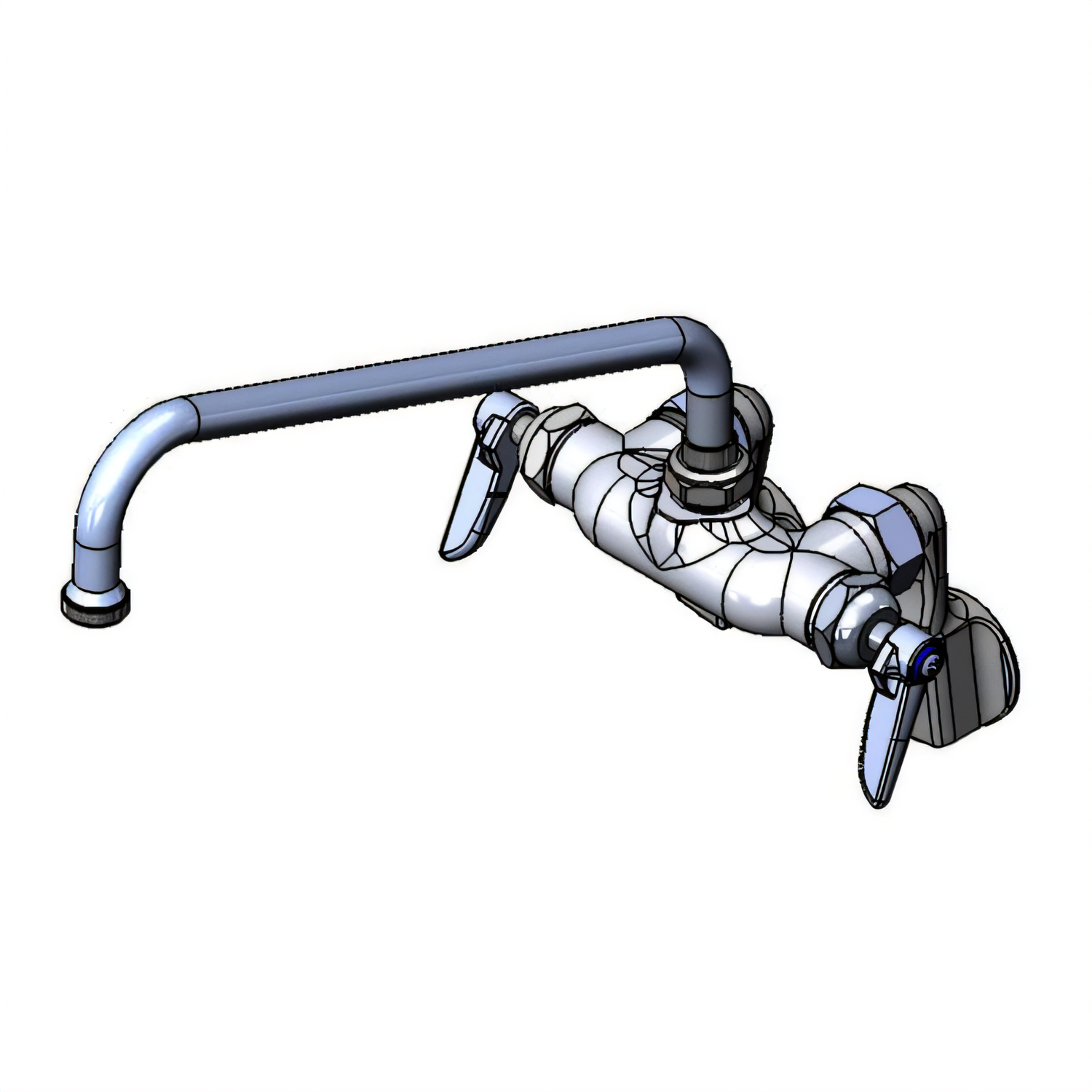 Sink Mixing Faucet, 12" swing nozzle, wall mounted, adjustable inlet arms (from 2-1/4" to 8-1/4" centers) 1/2" IPS female flange, lever handles, Eterna cartridges, low lead, ADA Compliant