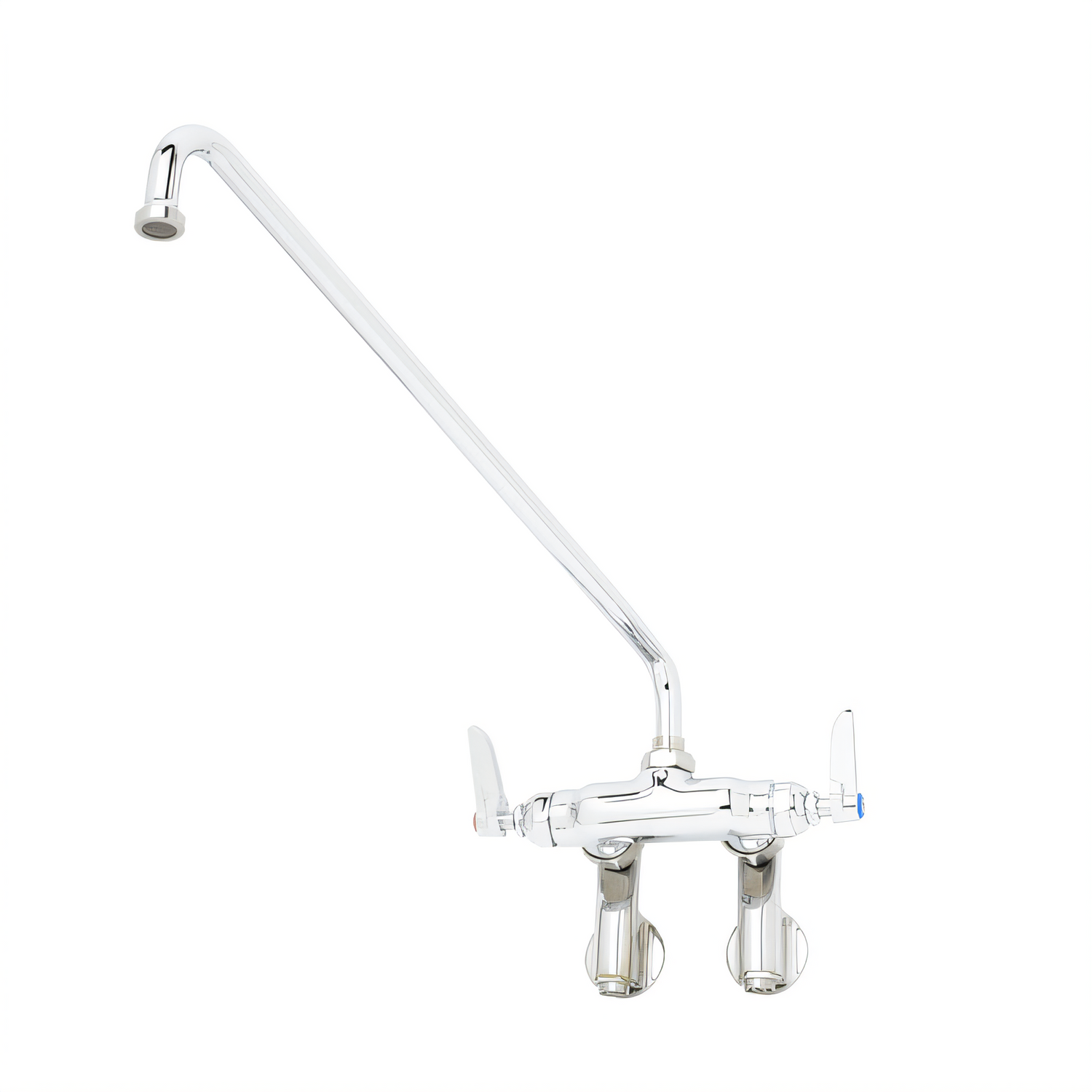 Sink Mixing Faucet, 18" swing nozzle, wall mounted, adjustable inlet arms with integral stops (from 2-1/4" to 8-1/4" centers- 1/2") IPS female with flange, lever handles, Eterna cartridges, low lead, ADA Compliant