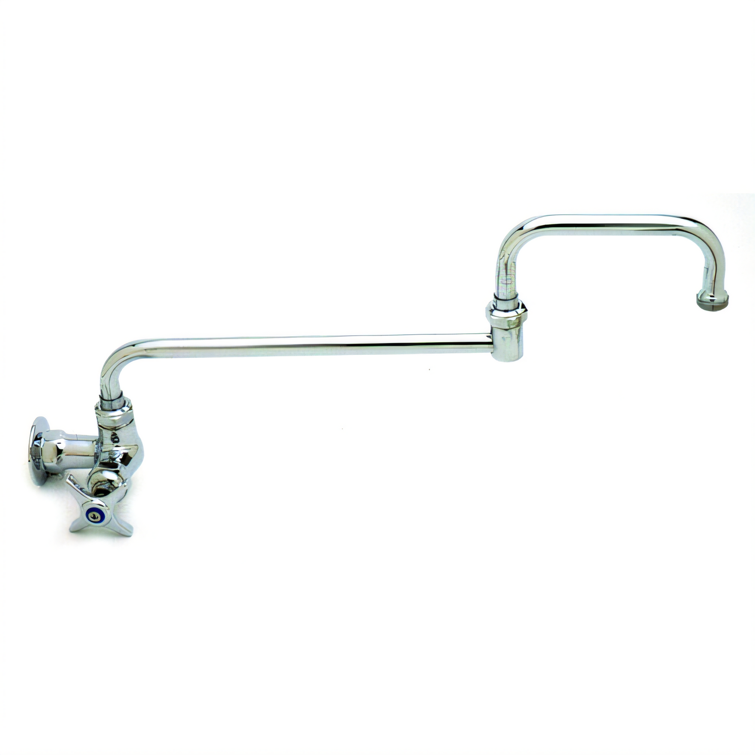 Sink Faucet, single, 12" long extended double joint swing nozzle, wall mounted, four arm handle, 1/2" NPT female inlet, quarter-turn Eterna cartridges, low lead, ADA Compliant