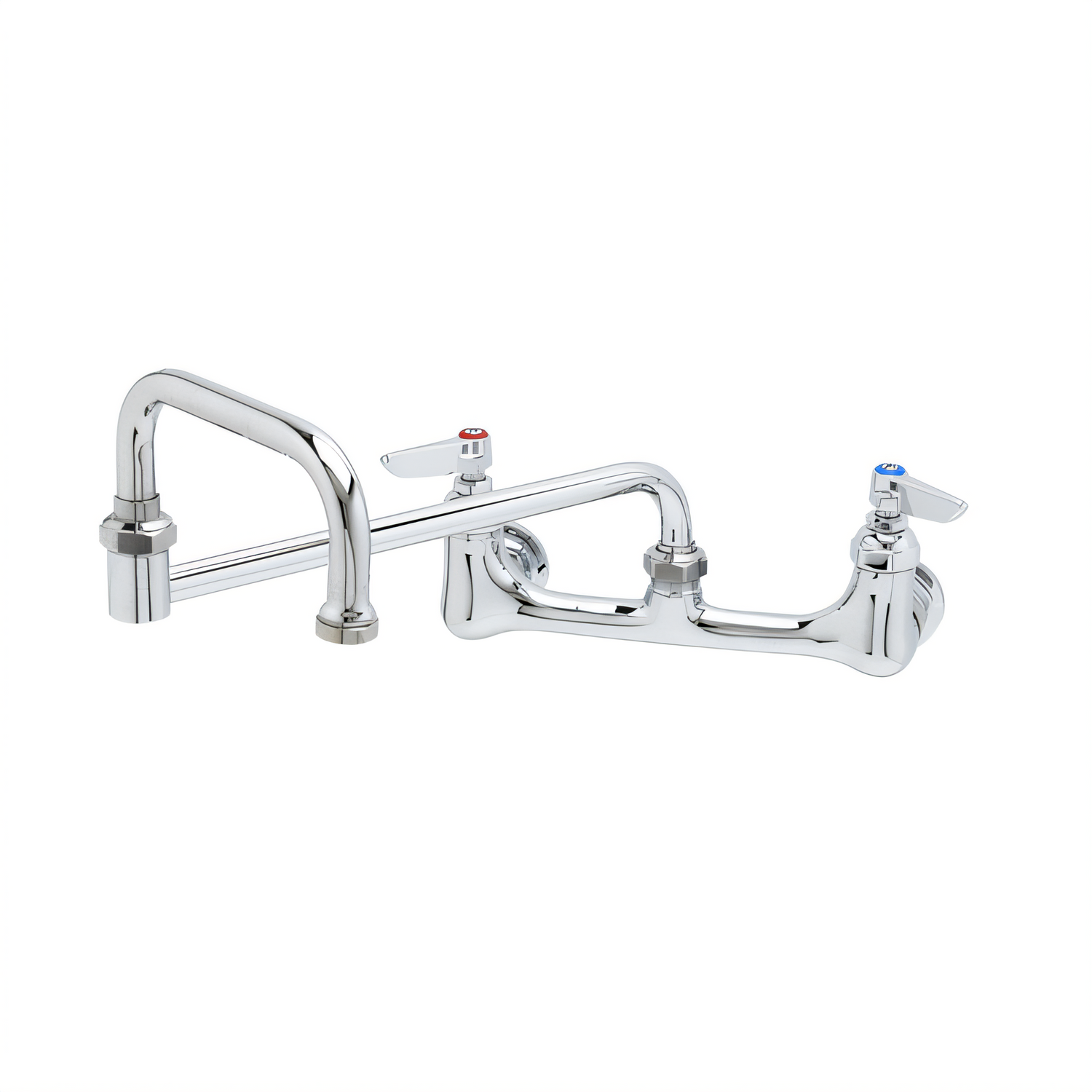 Sink Mixing Faucet, 12" long double joint swing nozzle, 8" centers, with lever handles, 1/2" NPT female inlet, quarter-turn Eterna cartridges, low lead, ADA Compliant
