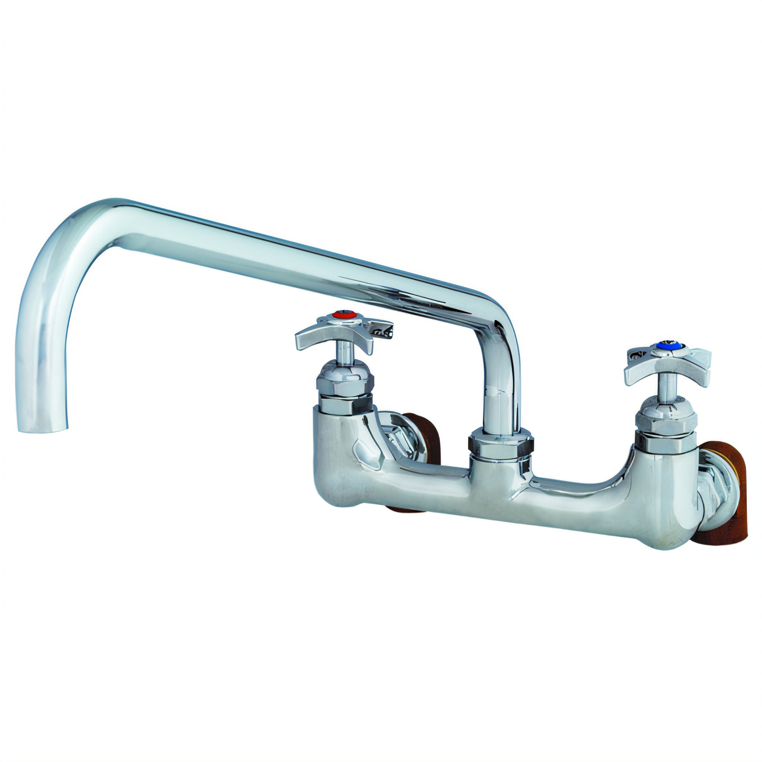 Mixing Faucet, wall mount, 8" adjustable centers, 14" Big-Flo swivel nozzle with plain end outlet, 4-arm handles with color coded indexes, 00LL inlet elbows, 3/4" NPT female inlets, ADA Compliant