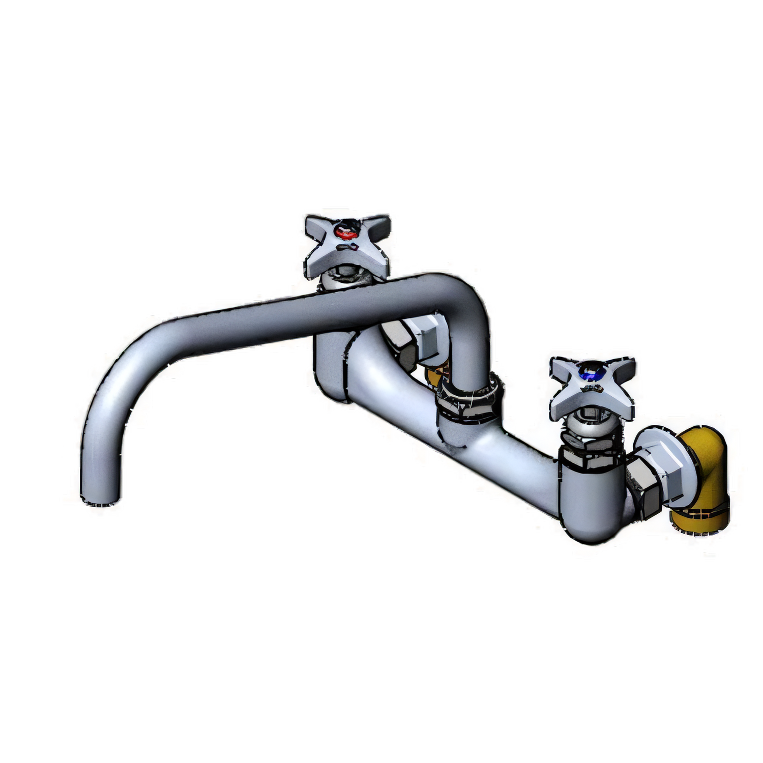 Big-Flo Mixing Faucet, wall mount, 8" adjustable centers, 12" Big-Flo swing nozzle with plain end outlet, 4-arm handles with color coded indexes, 00LL street elbows, 3/4" NPT female inlets, check valves, Big-Flo cartridges, ADA Compliant