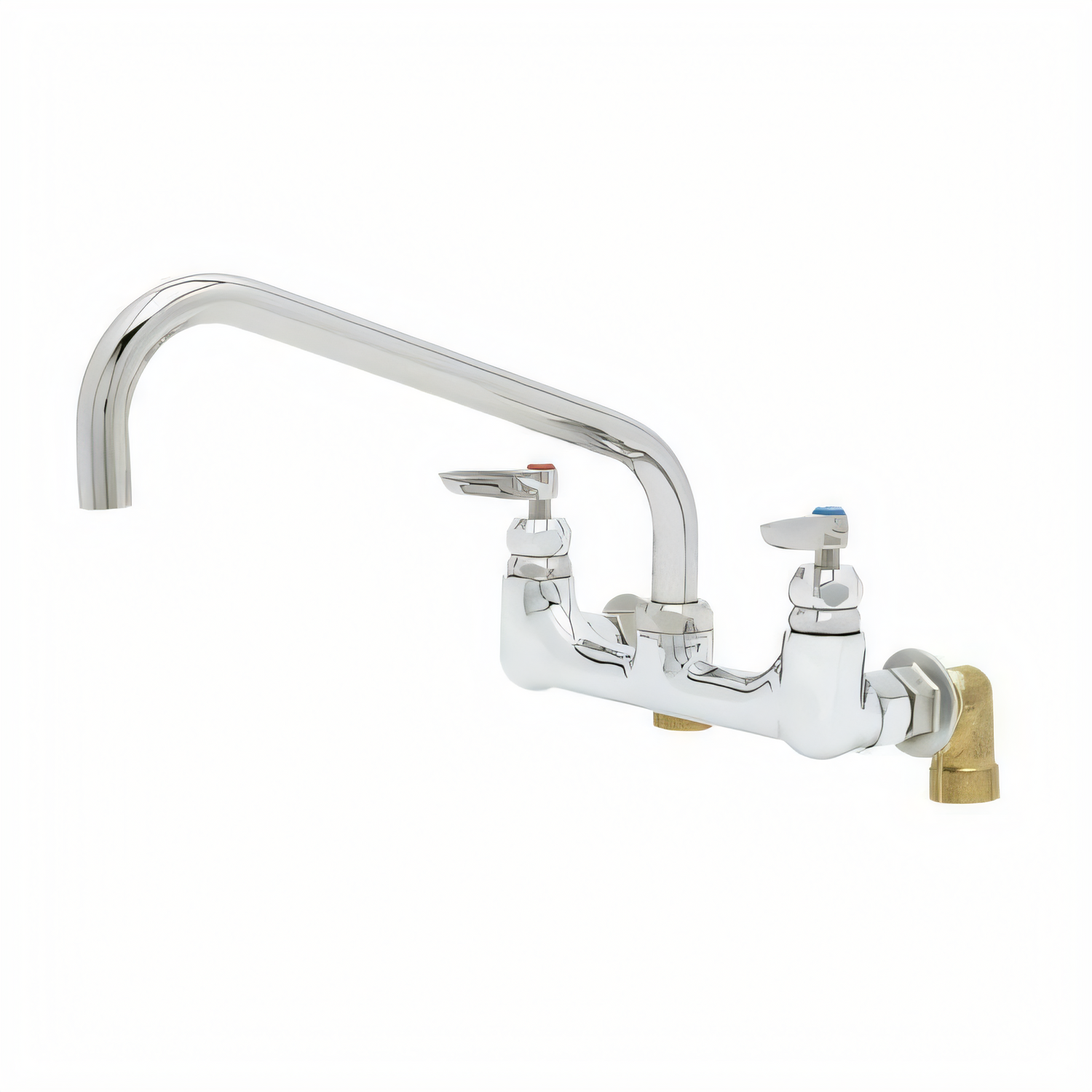 Big-Flo Mixing Faucet, wall mount, 8" centers, 12" swing nozzle, chrome plated brass lever handles with color coded indexes, Big-Flo compression cartridges, 3/4 female inlets (00LL street elbows), ow lead, NSF, ADA Compliant, cCSAus