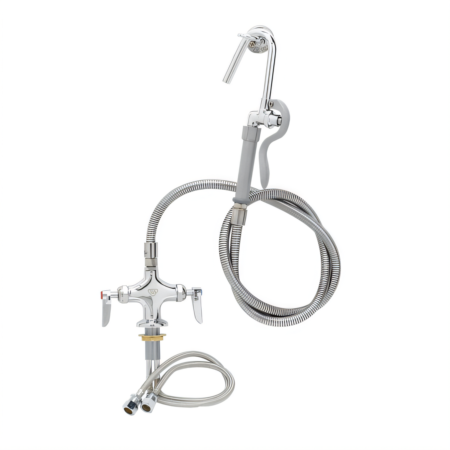Pantry Base Faucet, dual, 053A, B-0102-A hose & hook nozzle, B-0104-D wall hanger hook, quarter-turn Eterna cartridges, low lead, ADA Compliant