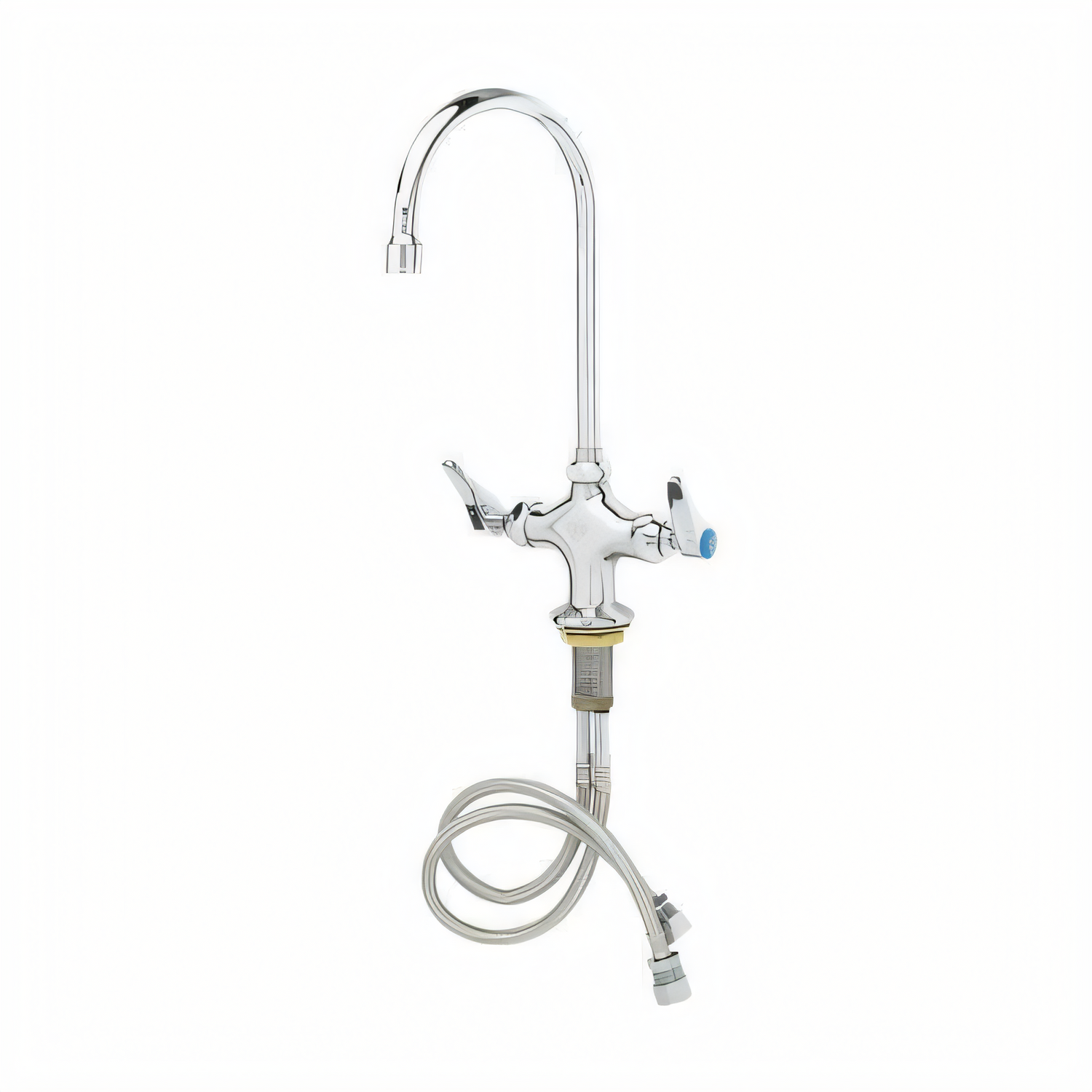 Double Pantry Faucet, deck mount, single hole base, 5-3/4" swivel gooseneck (133X) with 2.2 GPM VR aerator, quarter-turn Eterna cartridges with spring checks, 18" stainless steel flex hose, 12" NPSM male inlets, low lead, cCSAus, ADA Compliant