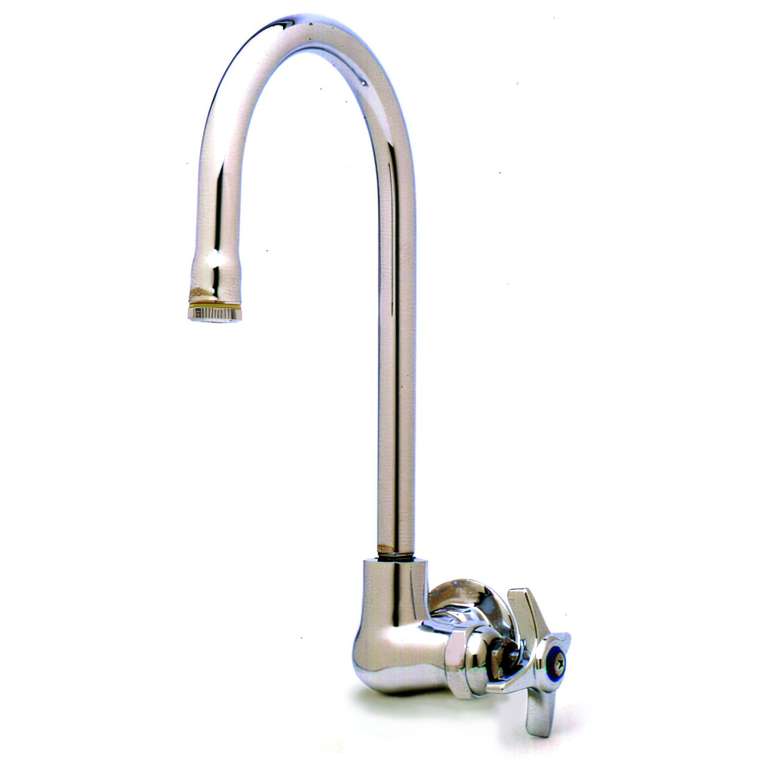 Single Sink Faucet, with gooseneck, wall mounted, 10-3/4"H from center of faucet to top of rigid gooseneck & 5-3/4" to tip of nozzle, 6" spread, 1/2" IPS flanged female inlet, four-arm handle, "C" (or "H"), quarter-turn Eterna cartridges, low lead, ADA Compliant