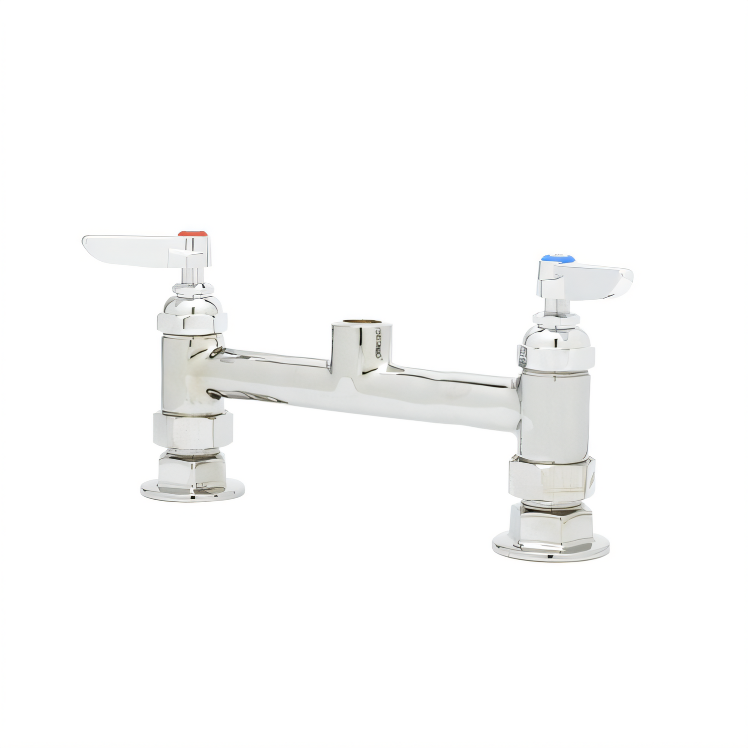 Faucet, deck-mount, 8" centers, rigid base only, 1/2" IPS eccentric flanged female inlets, quarter-turn Eterna cartridges, lever handles, low lead, ADA Compliant