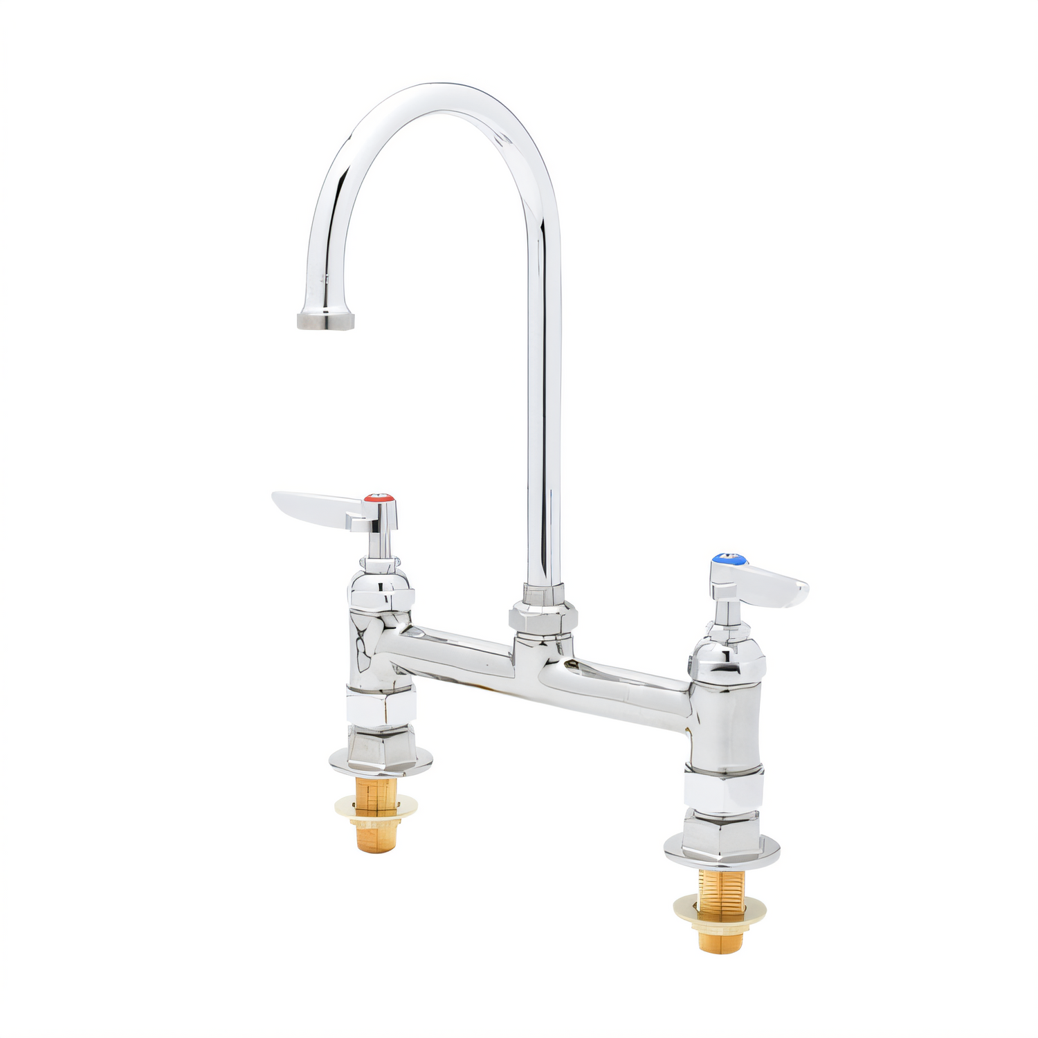 Double Pantry Faucet, deck mount, 8" c/c, swivel gooseneck, lever handles & B-0425 supply, quarter-turn Eterna cartridges, low lead, ADA Compliant